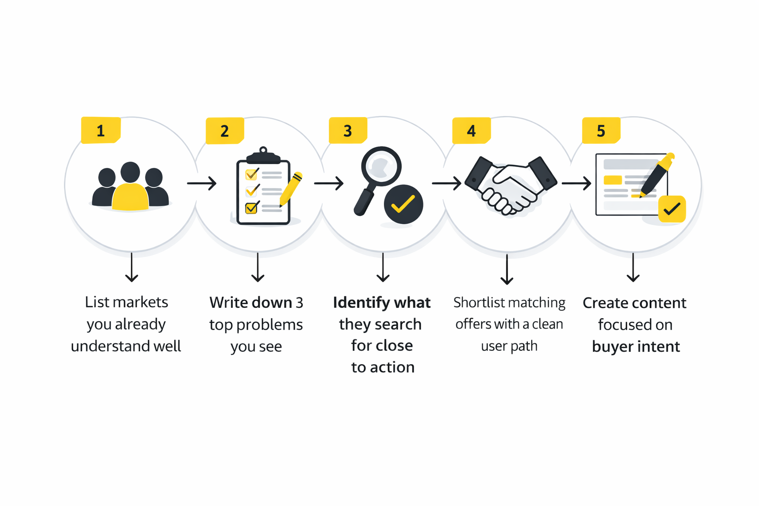 - Create content that matches buyer intent before worrying about scale.