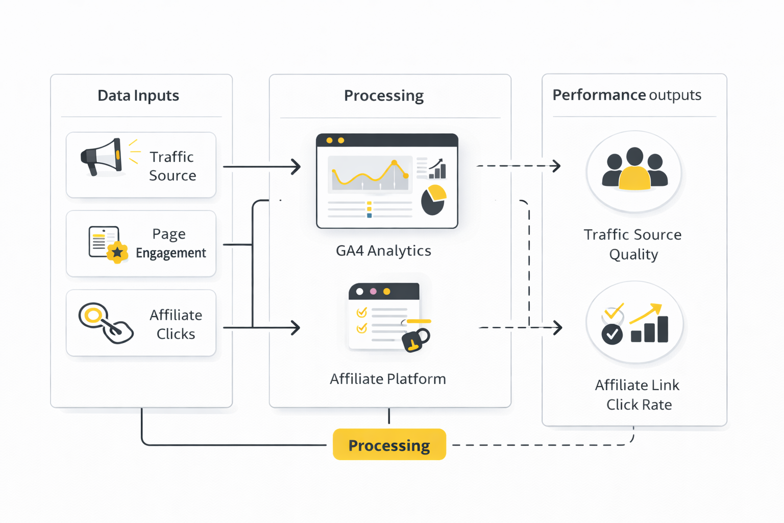 A simple measurement stack usually looks like this. First, track page-level performance in your analytics platform. Second, use tagged URLs so campaign sources are visible. Third, compare on-site engagement with affiliate platform numbers such as clicks, conversions, and EPC. Fourth, review the data together instead of treating content metrics and affiliate metrics as two separate worlds.