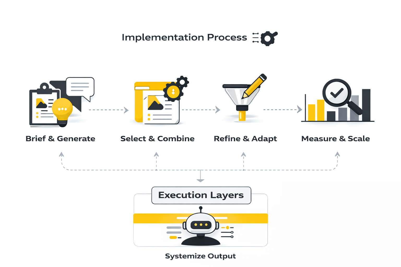The jump from decent ai copy to useful ai copy happens in execution. This is the stage where strategy turns into assets, assets turn into workflows, and workflows start producing pipeline, sales conversations, booked calls, or support deflection instead of just looking good in a doc. A lot of teams never make this leap because they treat AI like a writing toy instead of a production layer.