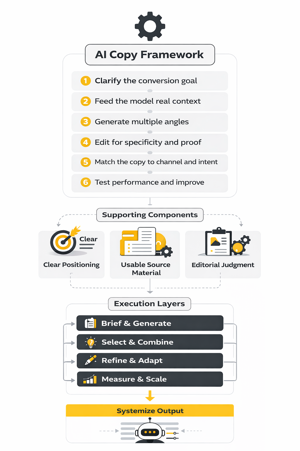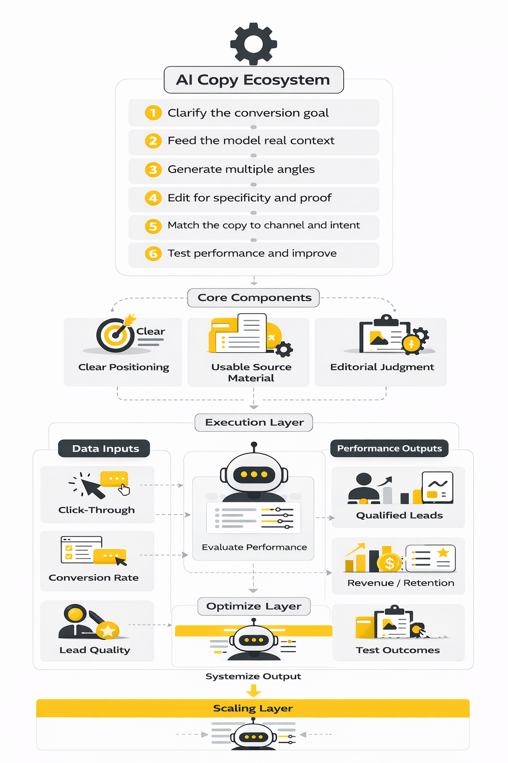 That is the mistake to avoid. The best operators do not ask ai copy to replace thinking. They use it to compress the path from message strategy to live execution, then they tighten the system with review, testing, and feedback loops.
