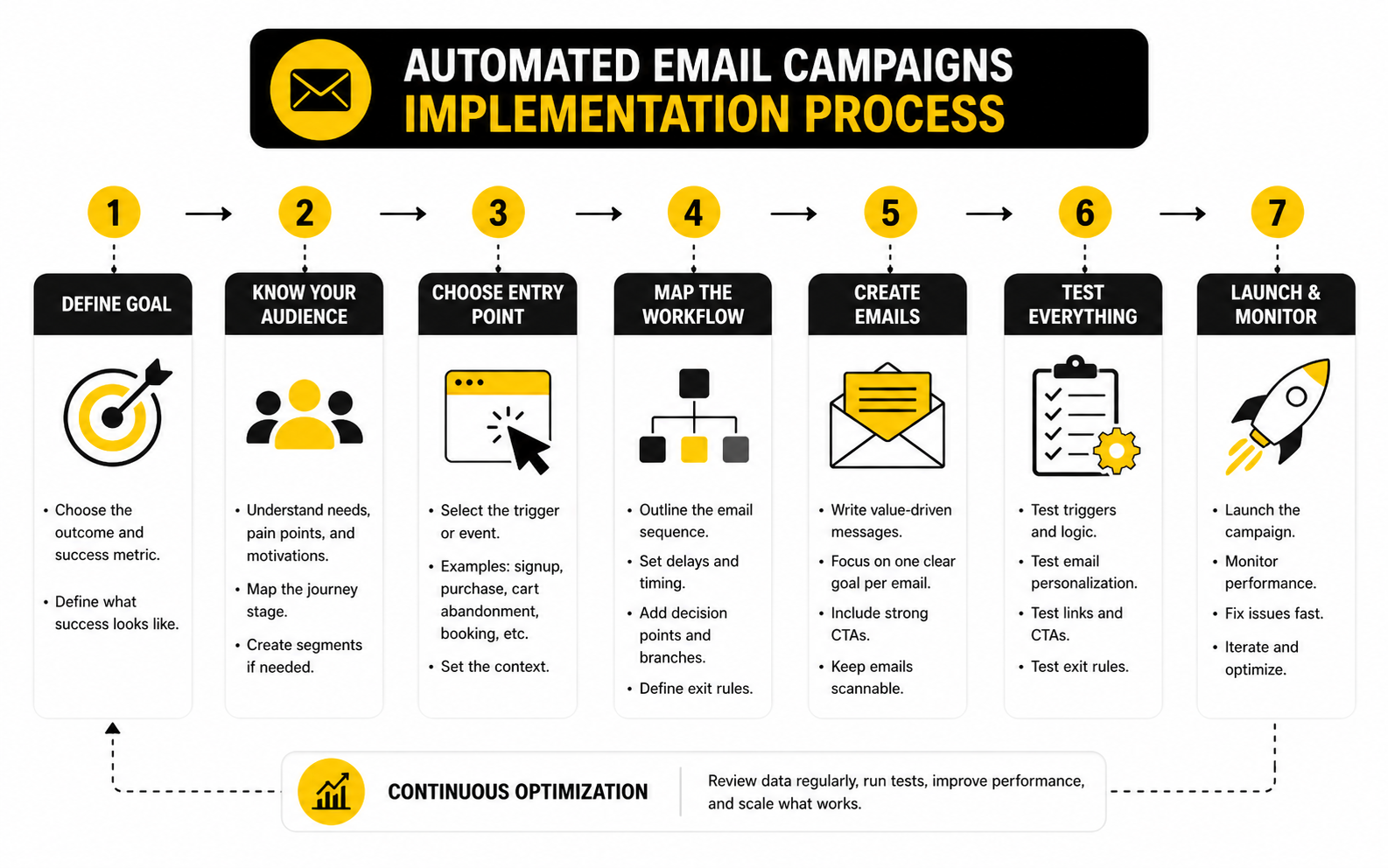 At this stage, the system is built, measured, and connected to real business outcomes. Now the work becomes sharper. Automated email campaigns improve when you make controlled changes, protect inbox placement, and scale only what is already working.