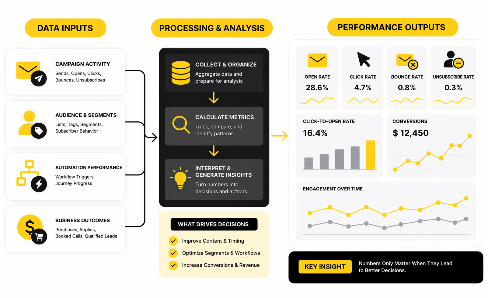 This is where a lot of teams go wrong. They look at open rate first, feel good or bad about the number, and stop there. That is far too shallow. Modern email performance has to be read as a system, because one metric can look healthy while the business result underneath it is getting worse.