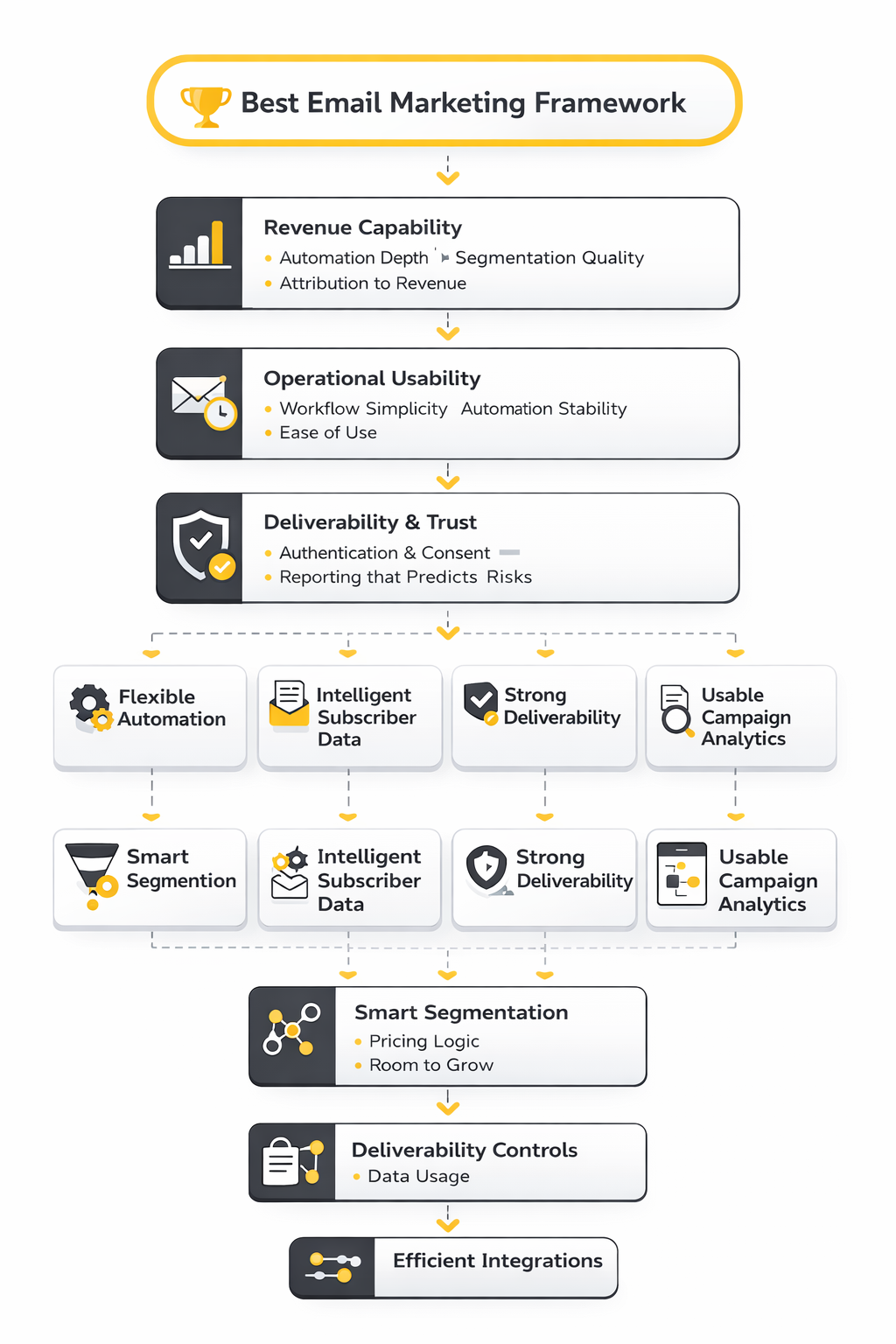 Four criteria will carry most of the weight throughout the guide. The first is revenue capability, which includes automation depth, segmentation quality, and how well the platform connects email activity to purchases, pipeline movement, or lead quality. The second is operational usability, because a tool can look powerful in a demo and still slow your team down every single week.