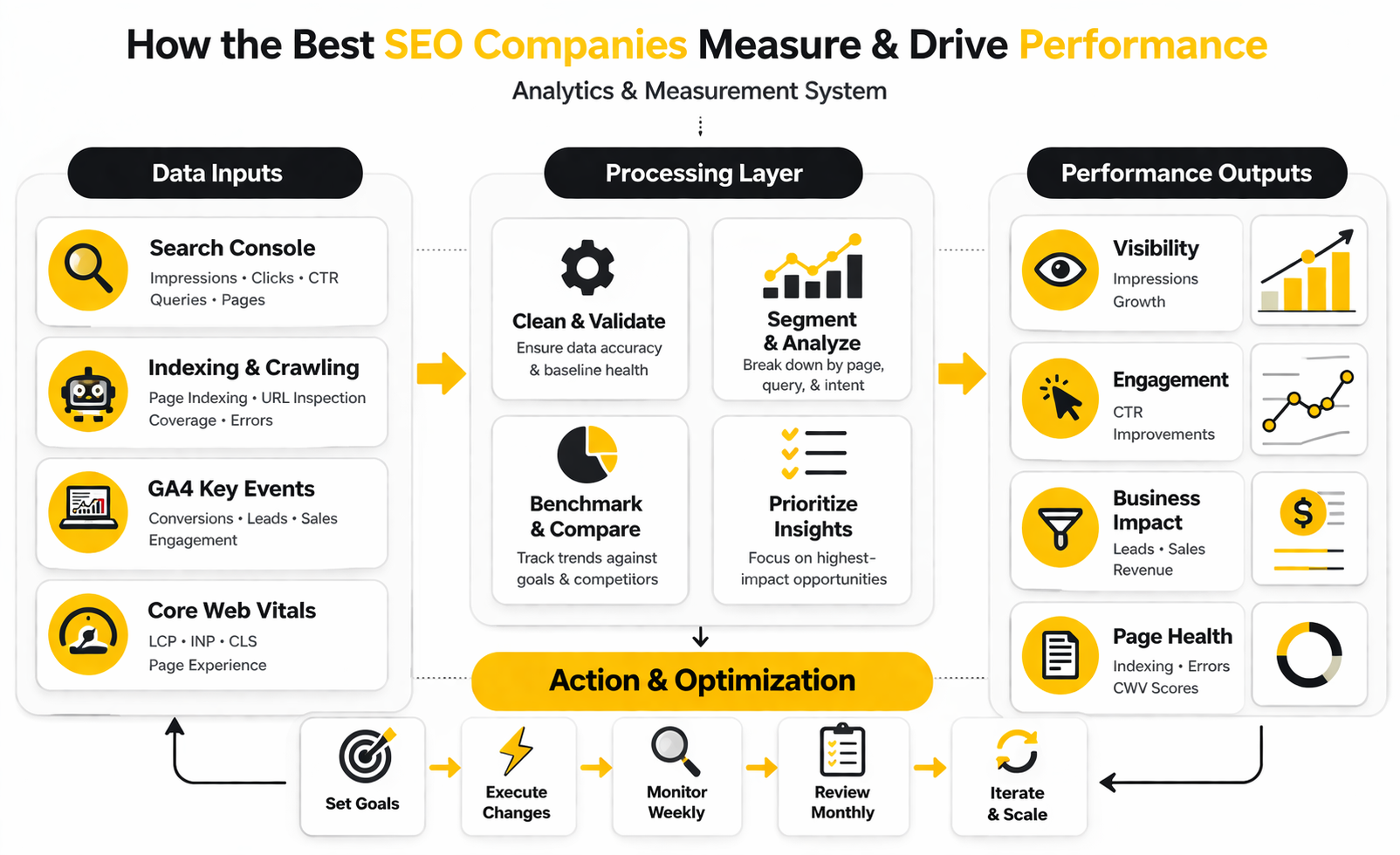 Measurement is where SEO stops being opinion and starts becoming a management system. This is also where many companies get misled, because they track whatever is easiest to screenshot instead of what actually explains performance. The best SEO companies do not just hand over a dashboard. They show how search visibility changes, how user behavior changes after pages improve, and which numbers should trigger action instead of applause.