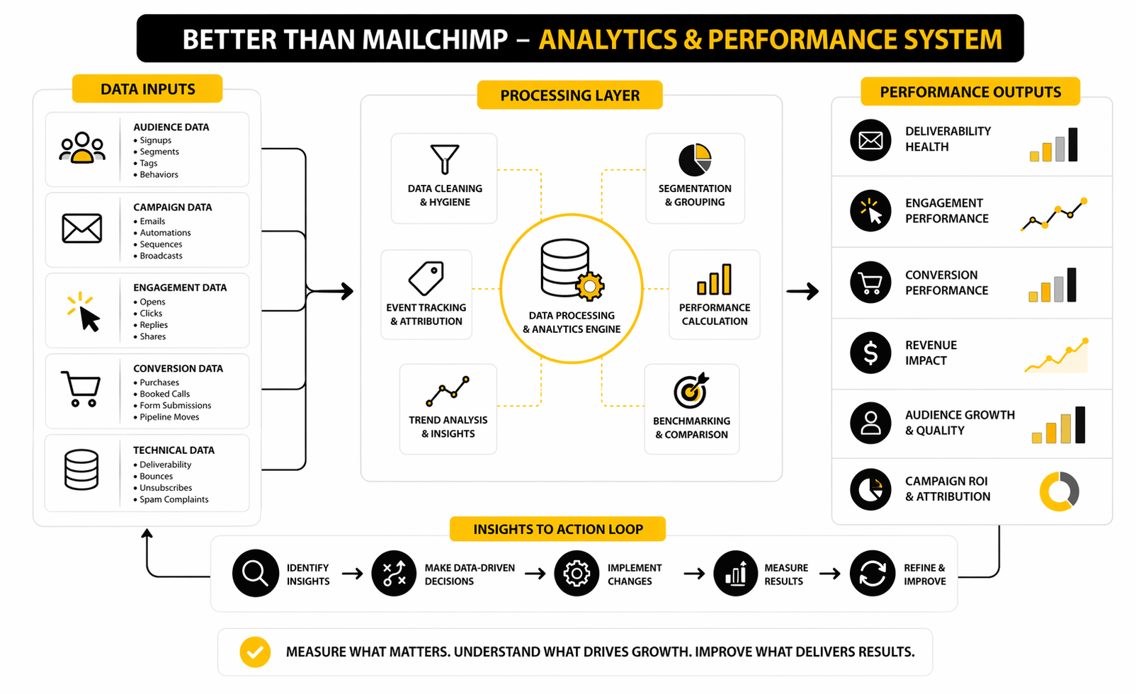 A useful analytics system should connect four layers: delivery, engagement, conversion, and retention. Delivery shows whether people can receive your emails. Engagement shows whether the message earns attention. Conversion shows whether that attention turns into action. Retention shows whether subscribers become customers again, stay active, or quietly disappear.