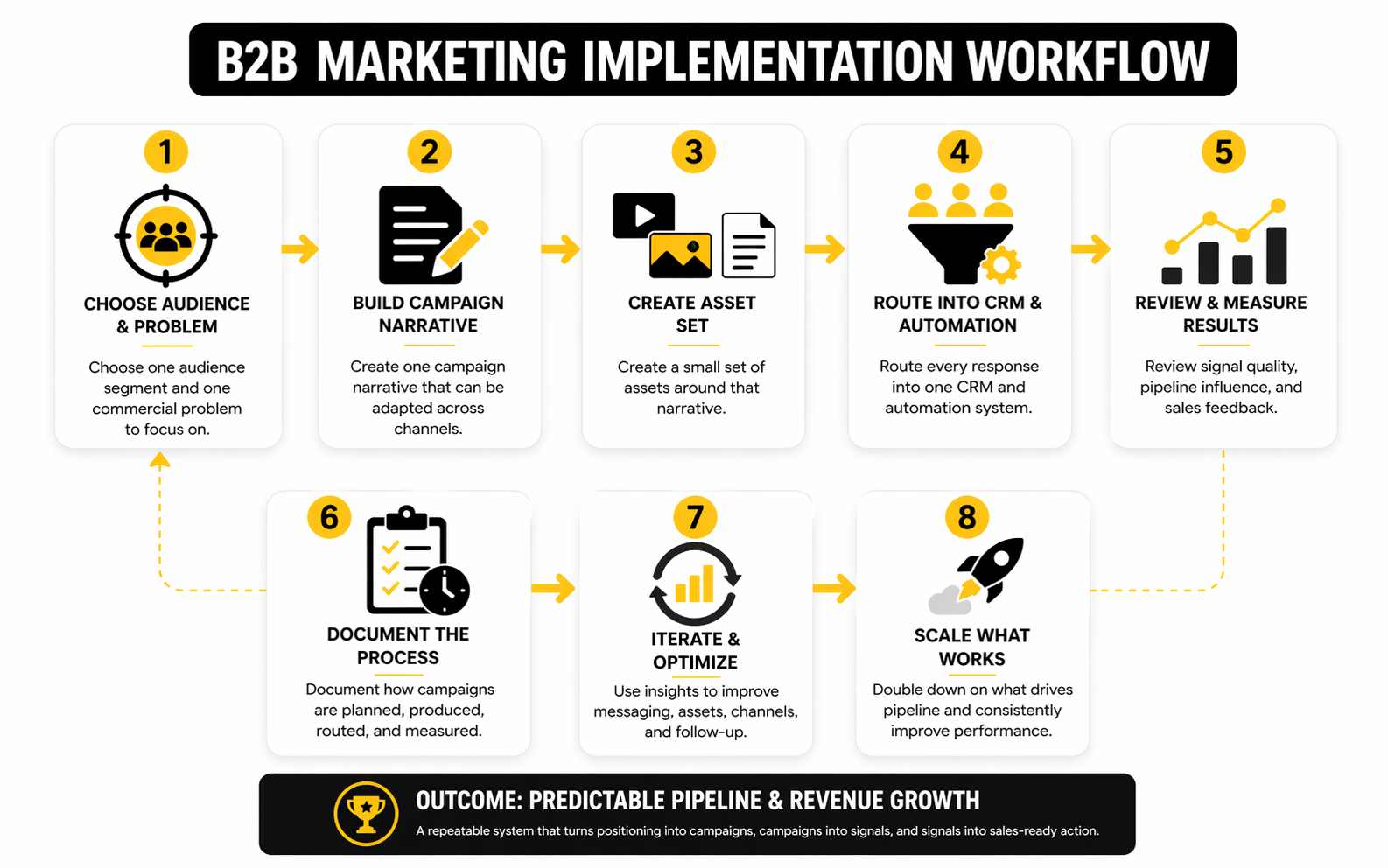 The goal is not to create a massive machine on day one. The goal is to build a system that can reliably turn positioning into campaigns, campaigns into signals, and signals into sales-ready action. That is a much more practical standard, and it is how strong teams avoid wasting months on disconnected experiments.