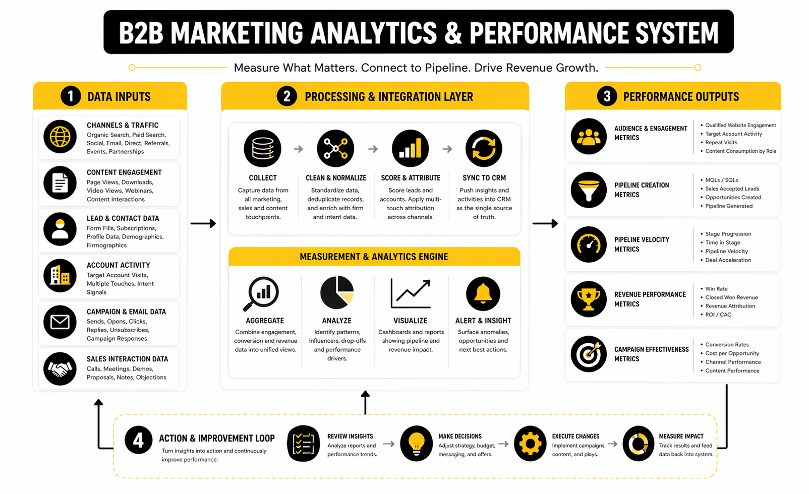 Most business to business marketing dashboards look busy long before they look useful. They show impressions, clicks, opens, form fills, and maybe a few campaign charts, but they still leave leadership with the same question: is marketing actually creating revenue momentum or just generating activity. That is why measurement has to move beyond channel reporting and into commercial decision-making.