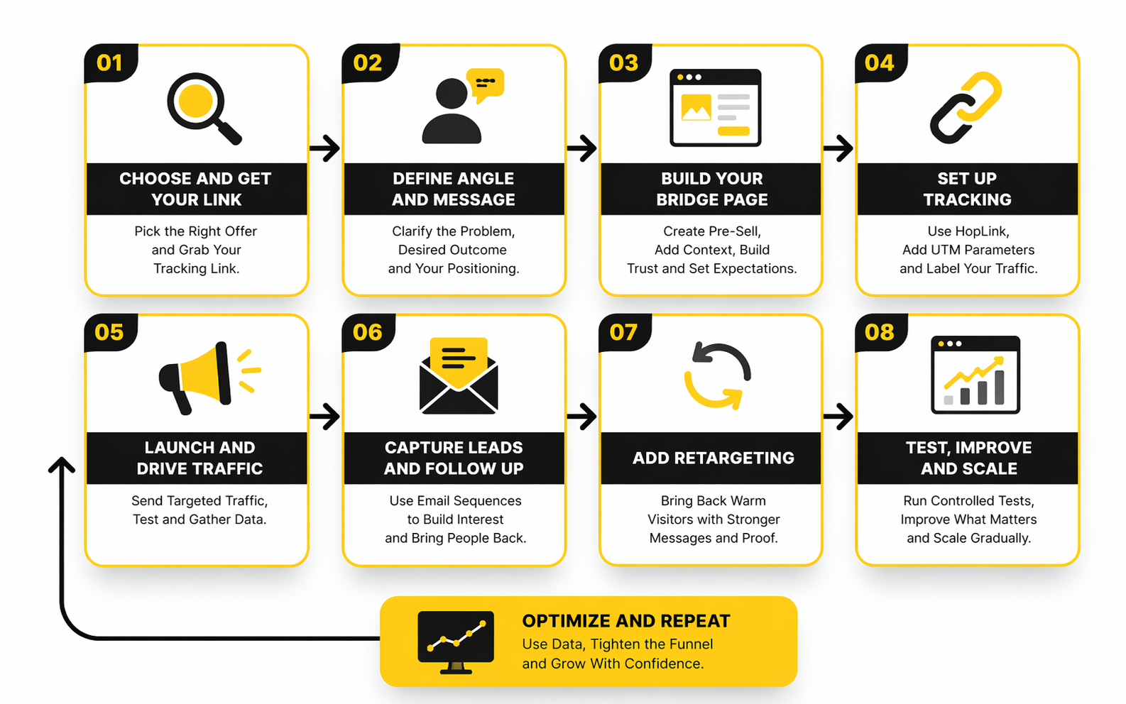 And that is where a clickbank affiliate business becomes much easier to scale intelligently. The next section moves into exactly that: how to use conversion assets, follow-up systems, and controlled testing loops to improve the funnel without creating chaos.