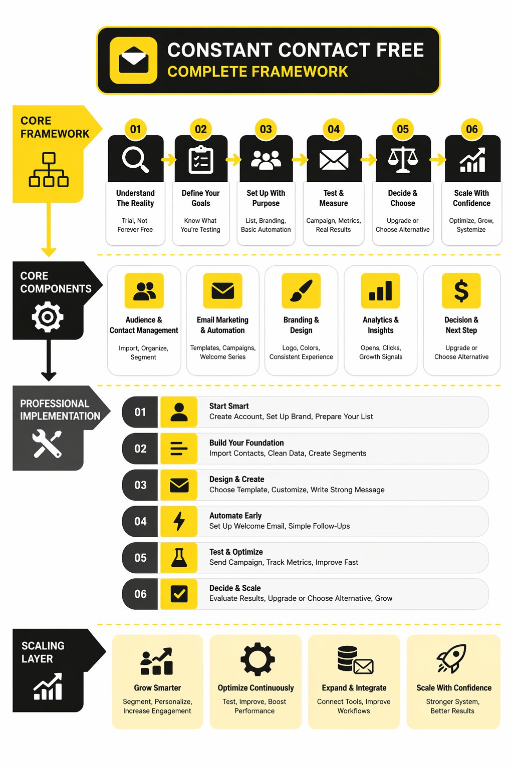 The right implementation mindset is simple: use the trial to build one solid email engine, not five half-finished experiments. That means a clean list, one clear signup path, one welcome sequence, one repeatable campaign format, and one reporting routine your team can actually keep using. If you can make those pieces work together, you learn far more than you would by bouncing around every feature tab in the account.