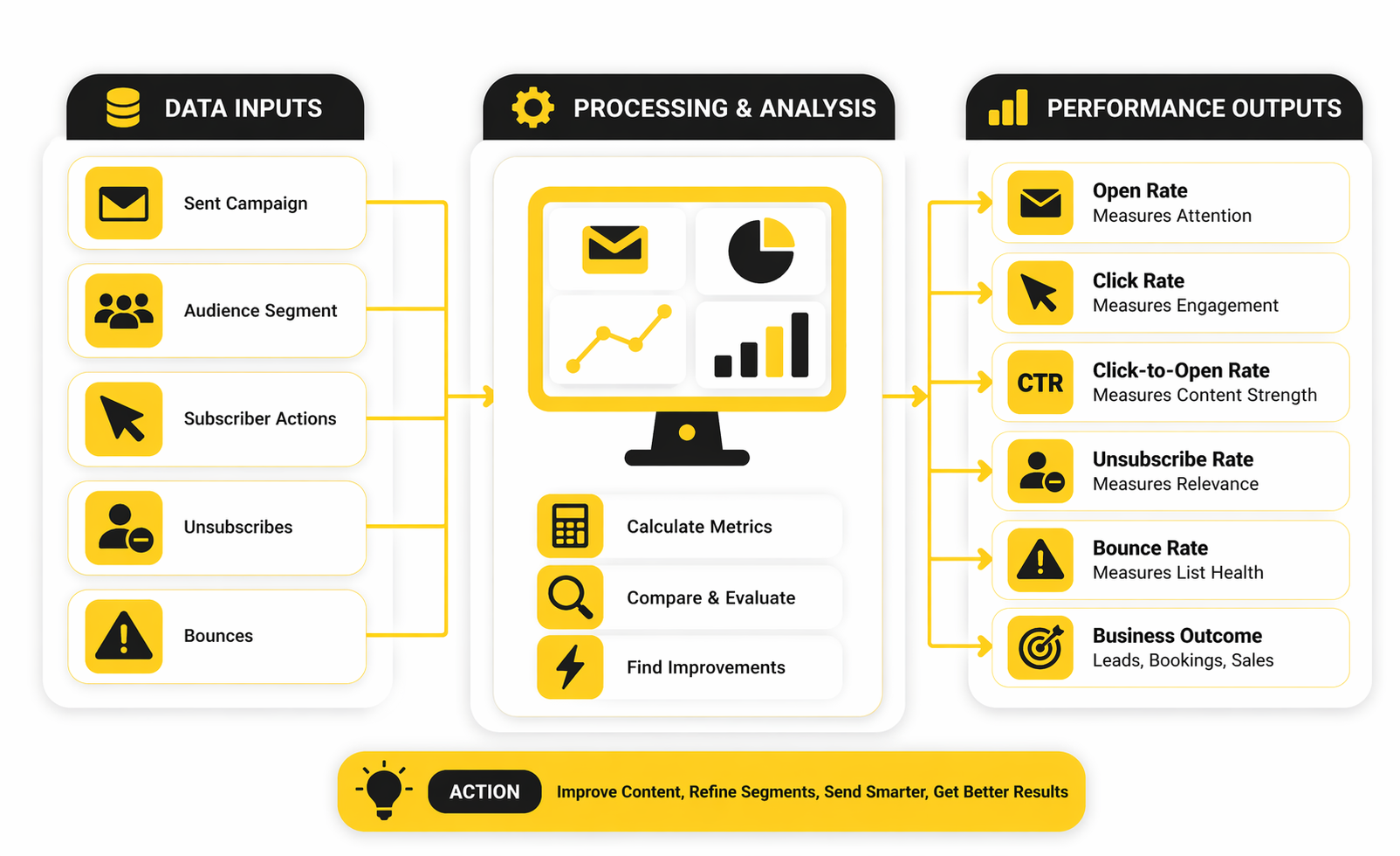The trap is treating every metric as equal. They are not. Open rates, click rates, unsubscribe rates, bounces, and downstream conversions each answer a different question, and mixing them together creates bad decisions. A clean analytics approach tells you where the problem lives, whether that is the list, the subject line, the message, or the offer itself.