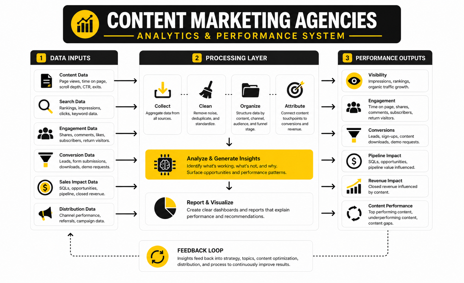 Content marketing agencies should be able to explain what is working, what is not, and what should change next. That does not mean obsessing over vanity metrics. It means connecting content performance to search visibility, qualified traffic, assisted conversions, pipeline influence, email engagement, sales usage, and audience quality.
