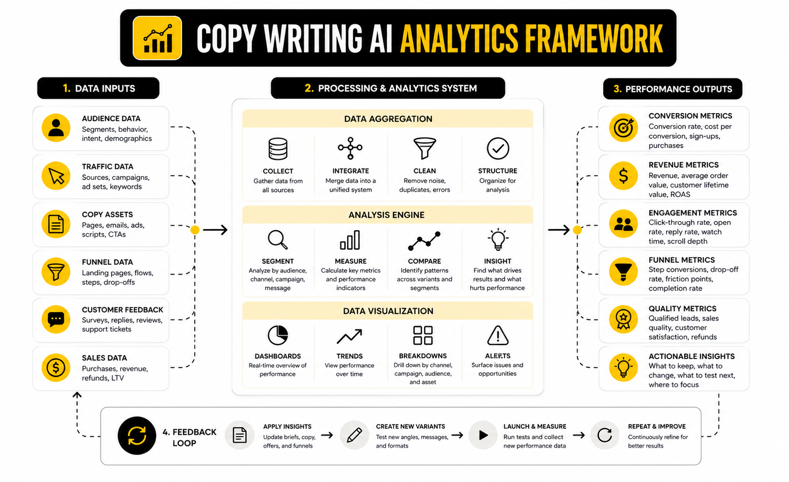 This is the practical advantage of copy writing AI when it is used properly. It gives you speed, but the measurement system gives you direction. Without data, you are just generating more words; with data, you are building a copy system that gets sharper over time.