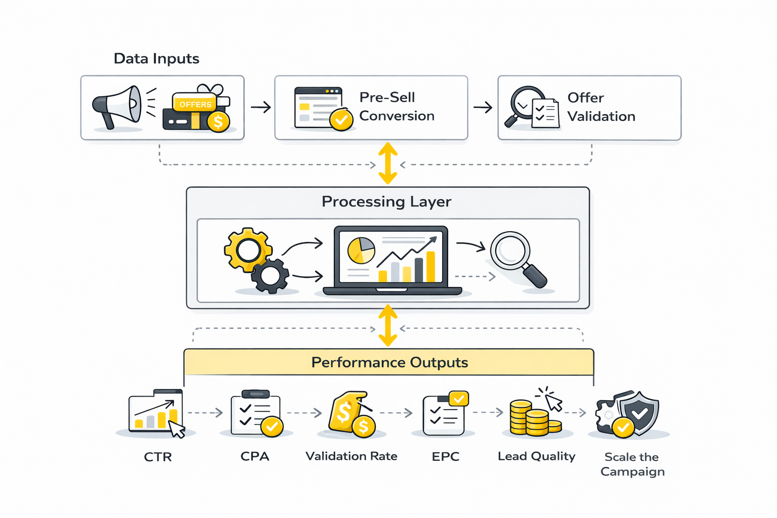 The cleanest way to understand CPA affiliate marketing is to see it as a four-part system: traffic, pre-sell, offer, and tracking. Traffic brings attention. The pre-sell frame shapes intent. The offer captures the action. Tracking tells you whether the first three pieces are producing profitable behavior or just activity that looks exciting in a dashboard.