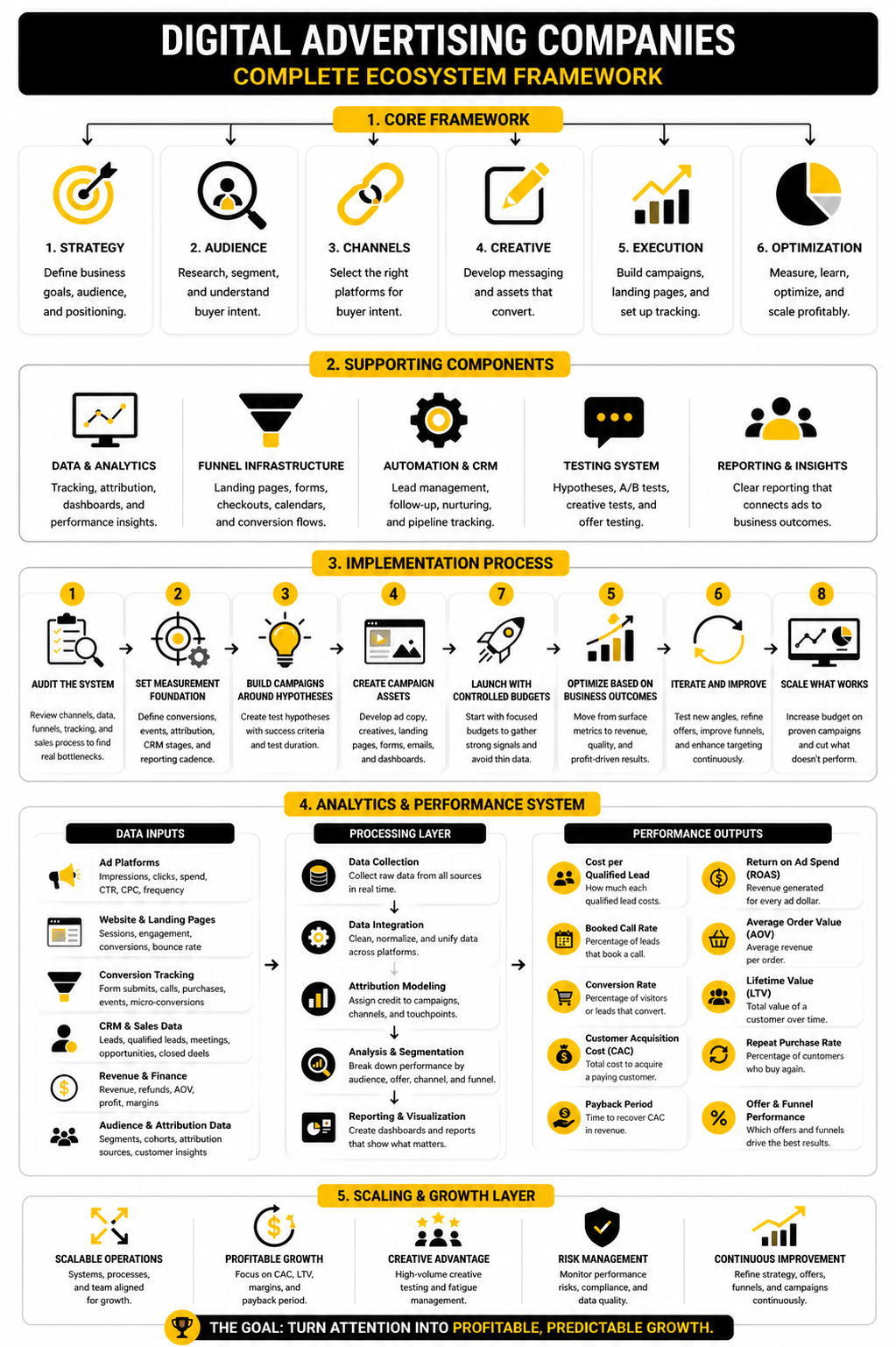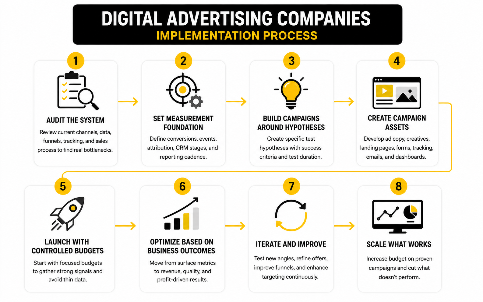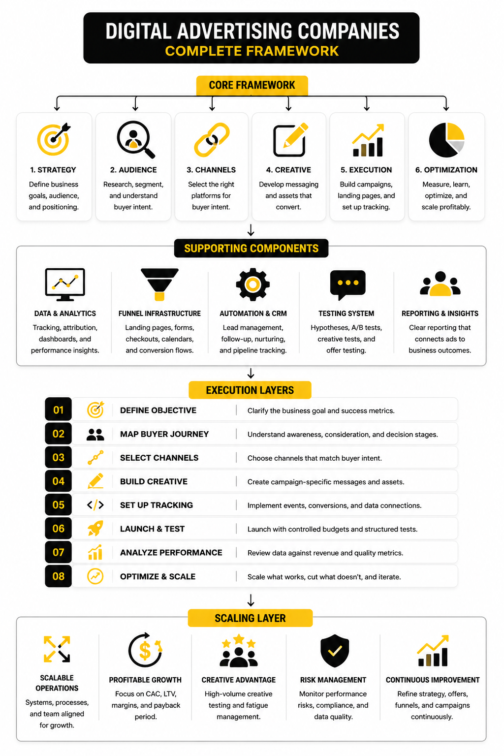 The framework becomes useful when it turns into operating discipline. A digital advertising company should be able to show how strategy becomes campaigns, how campaigns become tests, how tests become decisions, and how decisions improve business outcomes. That is the difference between activity and execution.