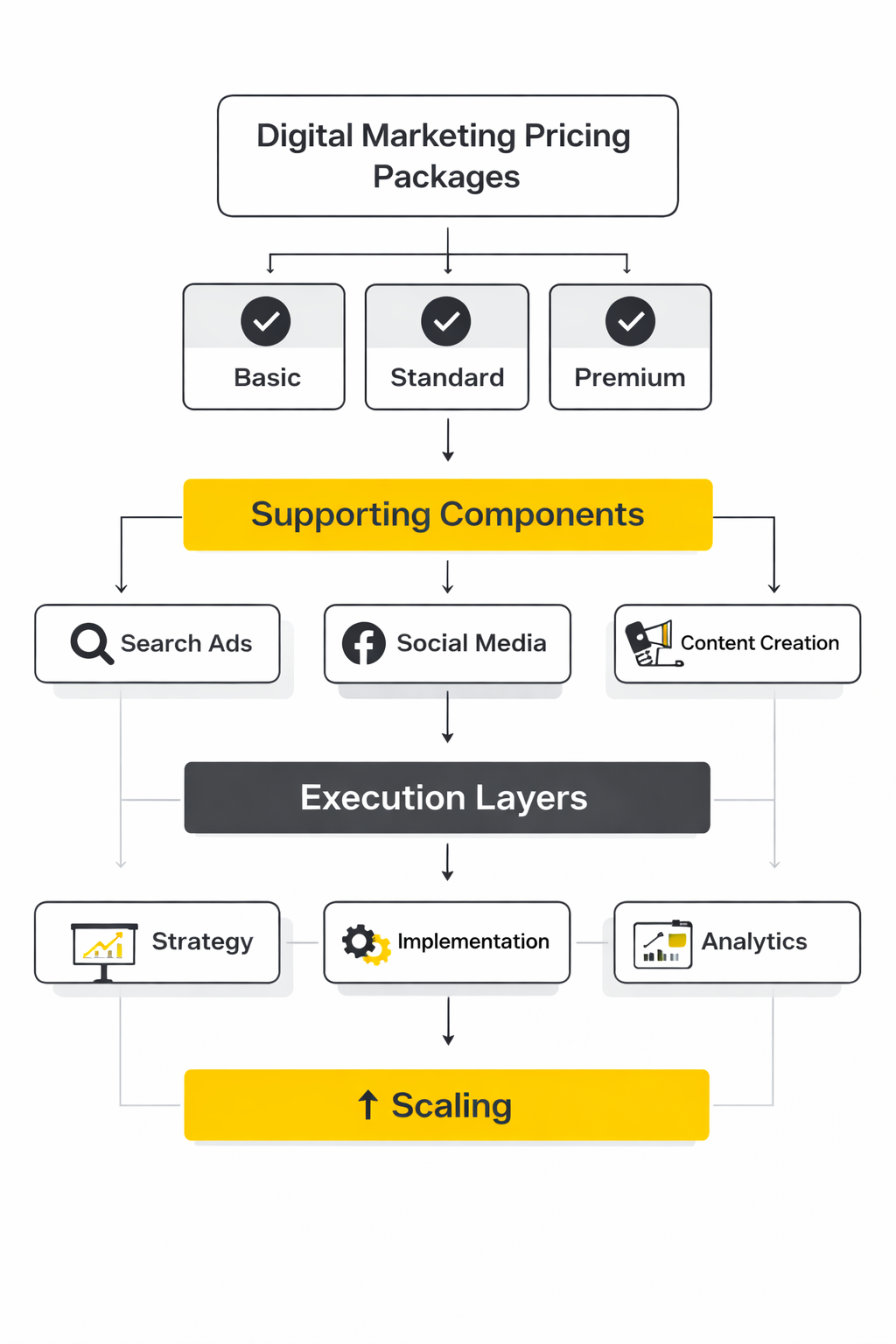 A digital marketing package should be built like an operating model, not like a menu. The core structure is simple: a defined buyer, a defined outcome, a defined scope, a defined cadence, and a defined level of accountability. That is the difference between a package that feels strategic and one that feels like a random bundle of tactics.
