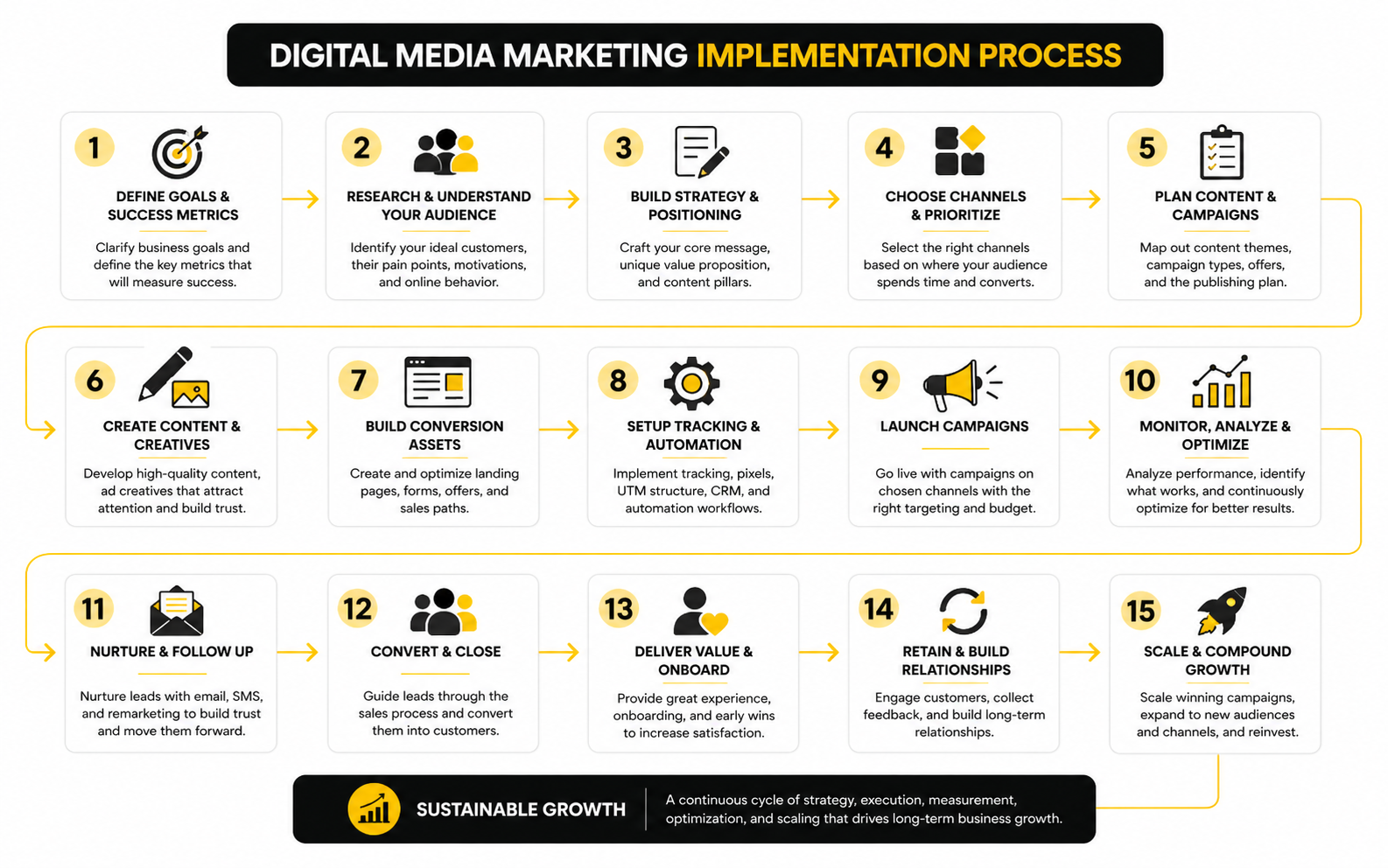 That loop is the point. Digital media marketing is not a one-time campaign that ends when the ads stop running. It is a cycle of learning, improving, and compounding.