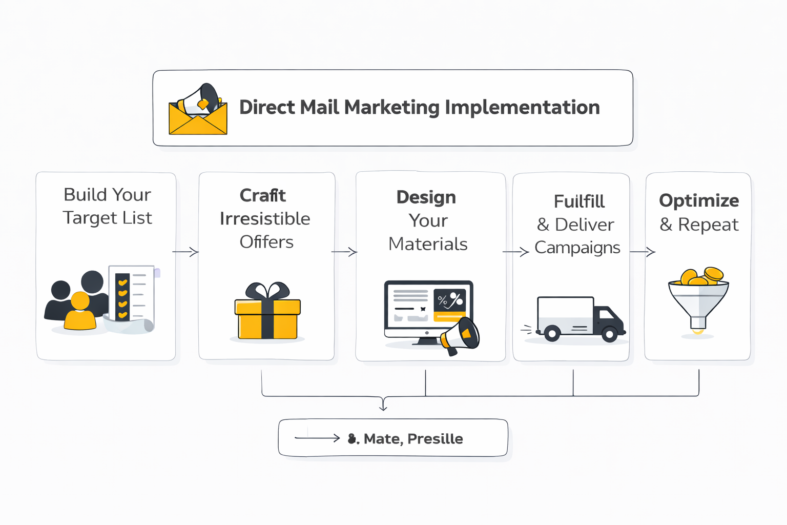 A reliable direct mail marketing workflow typically follows a structured sequence. Skipping steps or rushing through them is where most issues appear.