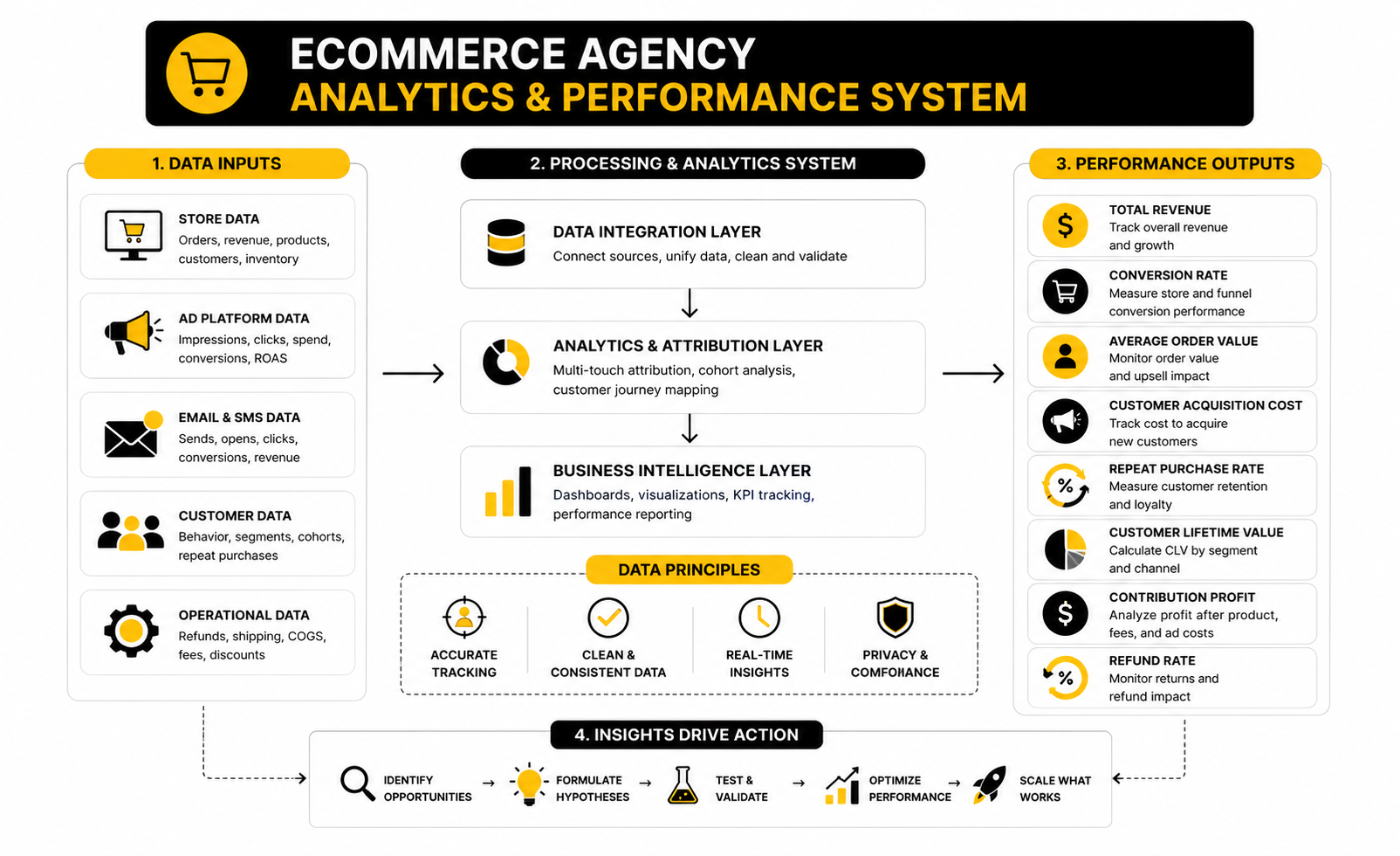 The point is simple: data should remove confusion. It should help the ecommerce agency and the brand decide what to fix, what to test, what to scale, and what to stop doing. When measurement does that, it becomes a growth advantage instead of another dashboard nobody trusts.