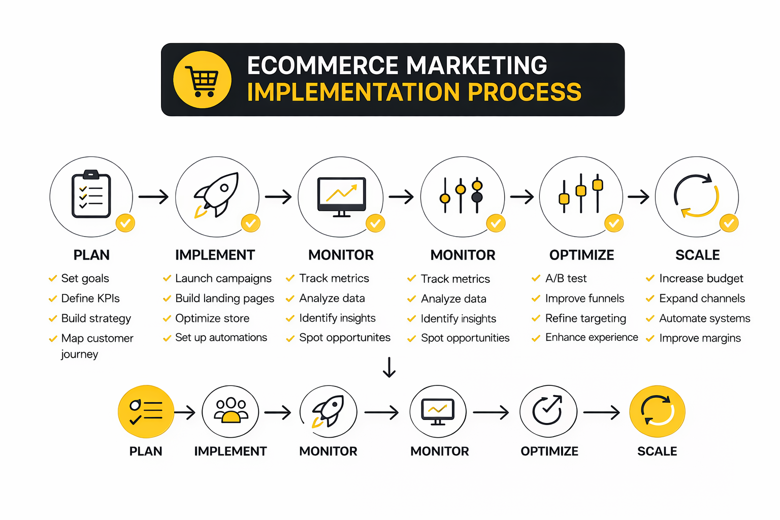 A better process is sequential and brutally practical. First diagnose friction, then prioritize changes by expected impact, then implement fast, then measure hard, then keep only what proves itself. This is where ecommerce marketing starts looking like an operating system instead of a campaign calendar.
