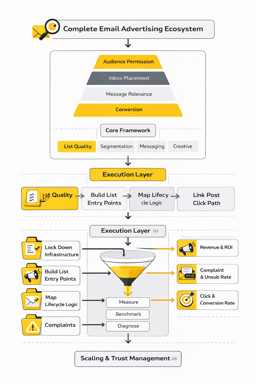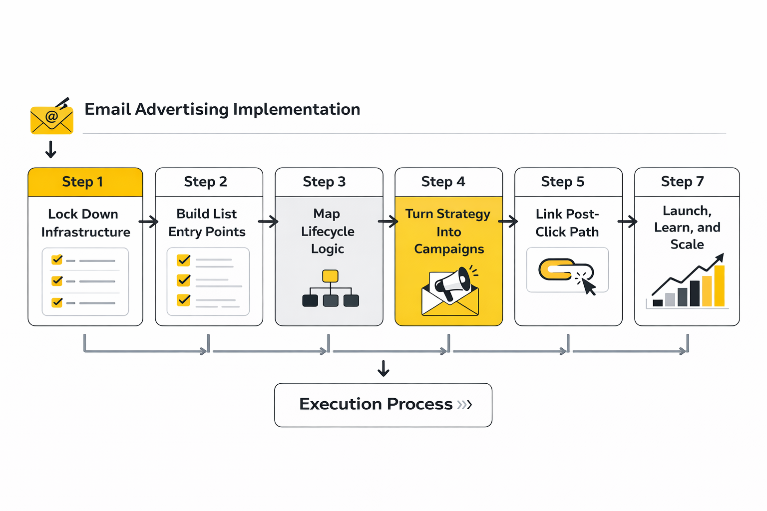The difference between amateur and professional email advertising is not creativity alone. It is process. Strong teams build the channel in a sequence that protects deliverability first, makes targeting operational second, and only then scales creative and campaign volume.