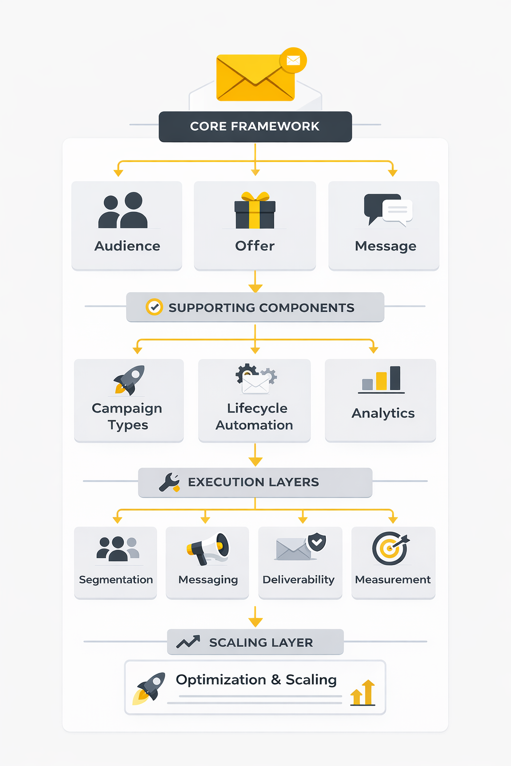 That is why a practical framework beats random tactics. Instead of asking whether you should send a discount, a newsletter, a welcome sequence, or a re-engagement email, you start by asking what job the campaign needs to do. Once the objective is clear, the structure becomes much easier to build.