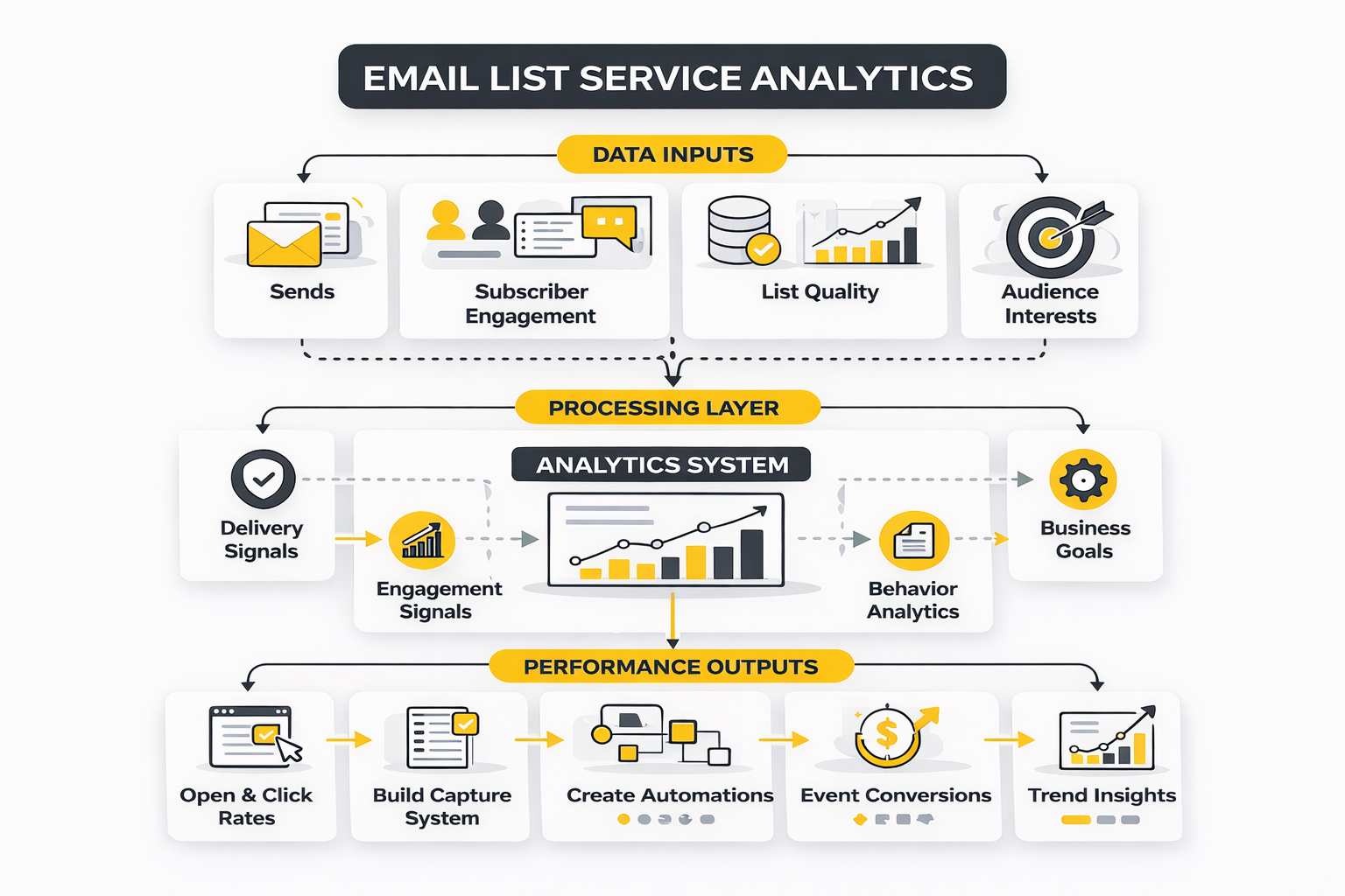 That does not mean the data is useless. It means the data needs context. A solid email list service should help you interpret performance in layers: attention signals, engagement signals, deliverability signals, and business signals. When those layers are read together, the numbers become operational guidance instead of vanity metrics.