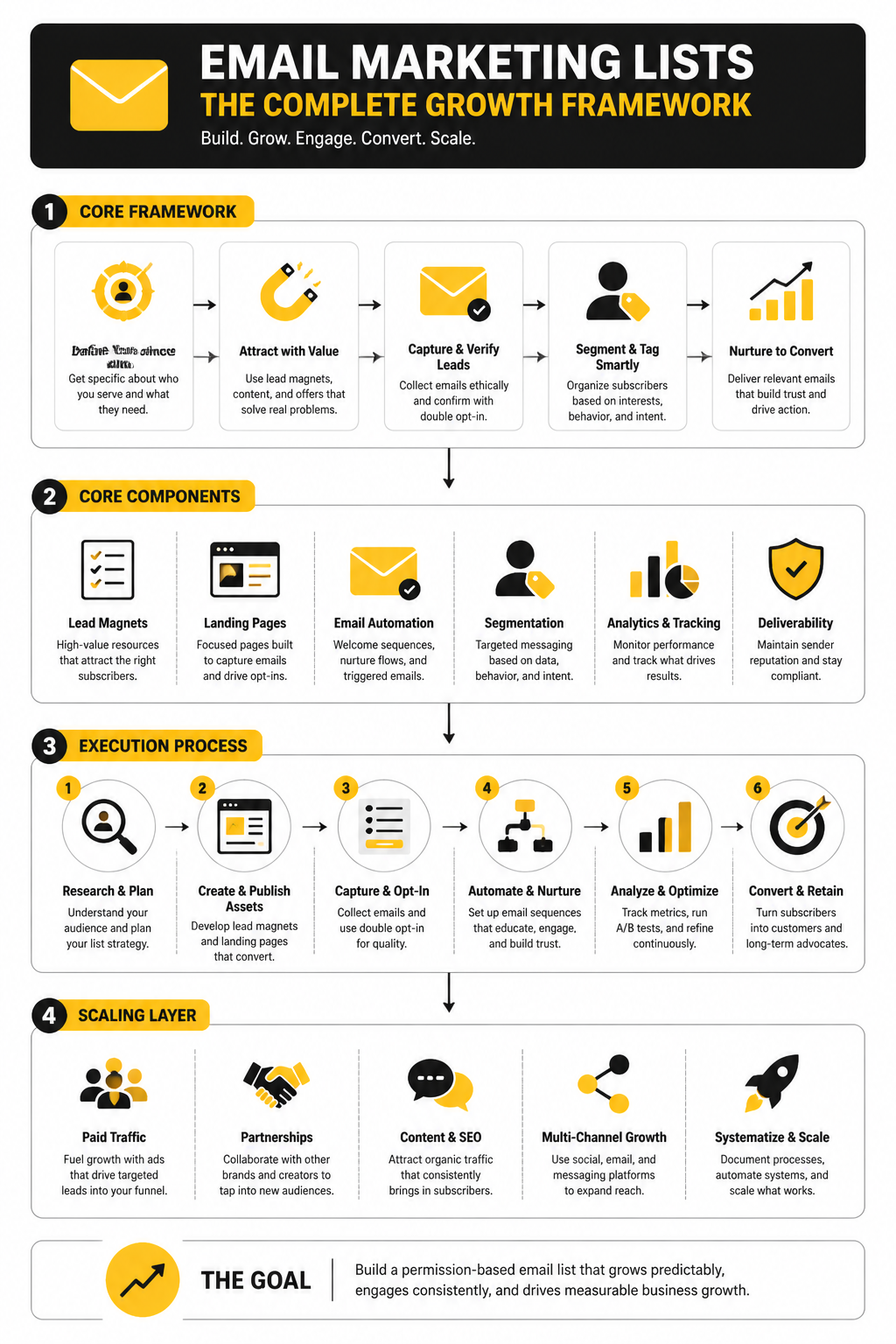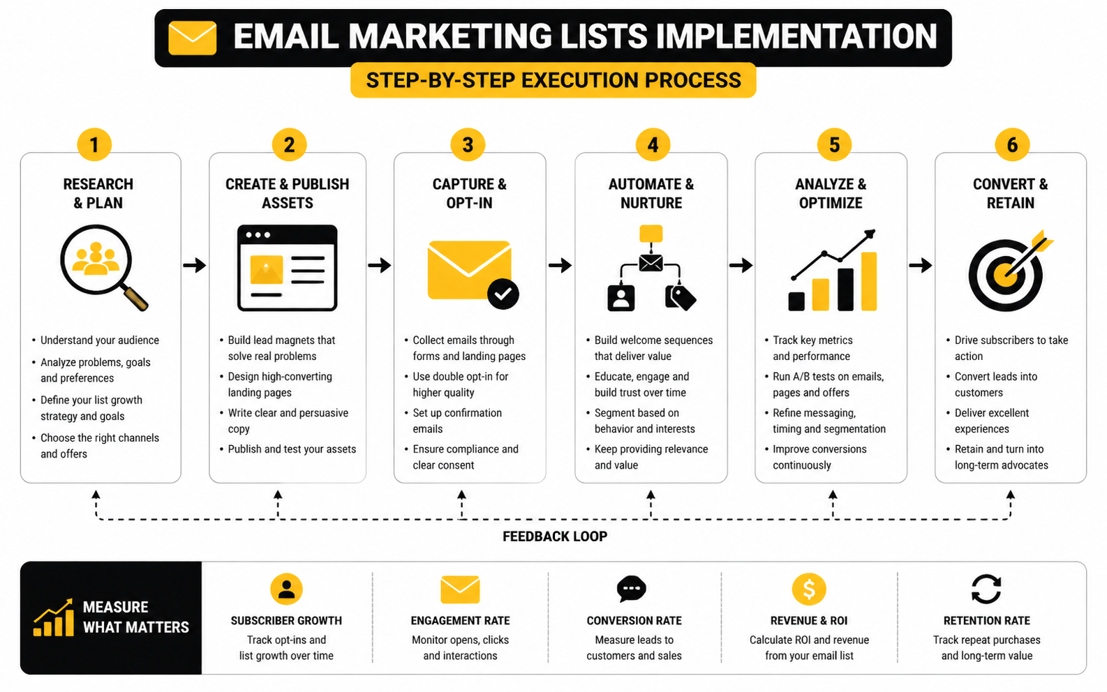 Building your email list the right way requires a structured process. This isn’t just about having the right tools — it’s about executing a system that consistently attracts, qualifies, and engages subscribers. When implemented correctly, your list becomes a business asset that grows predictably over time.