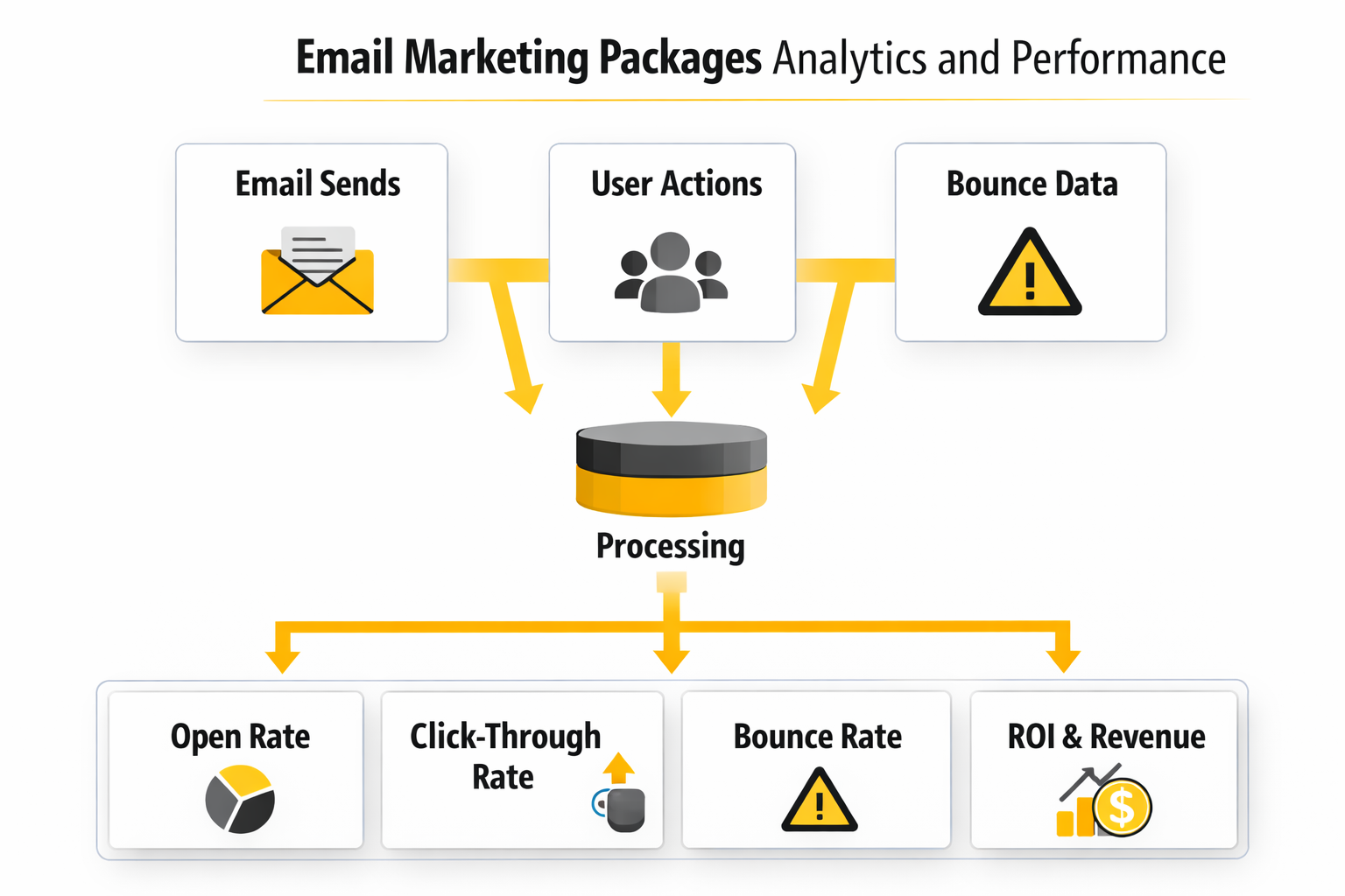 A good package should report performance in layers, because one flat dashboard hides too much. HubSpot’s reporting framework separates deliverability, engagement, and revenue attribution, and Litmus makes the same broader point: the right metric depends on the business outcome you are trying to move. In practice, the cleanest way to read email performance is to track acquisition quality, inbox health, engagement quality, and business impact side by side. HubSpot Blog+1