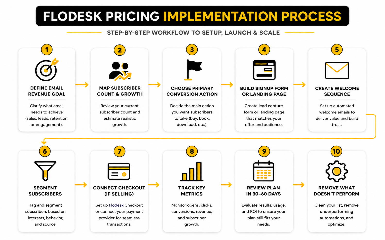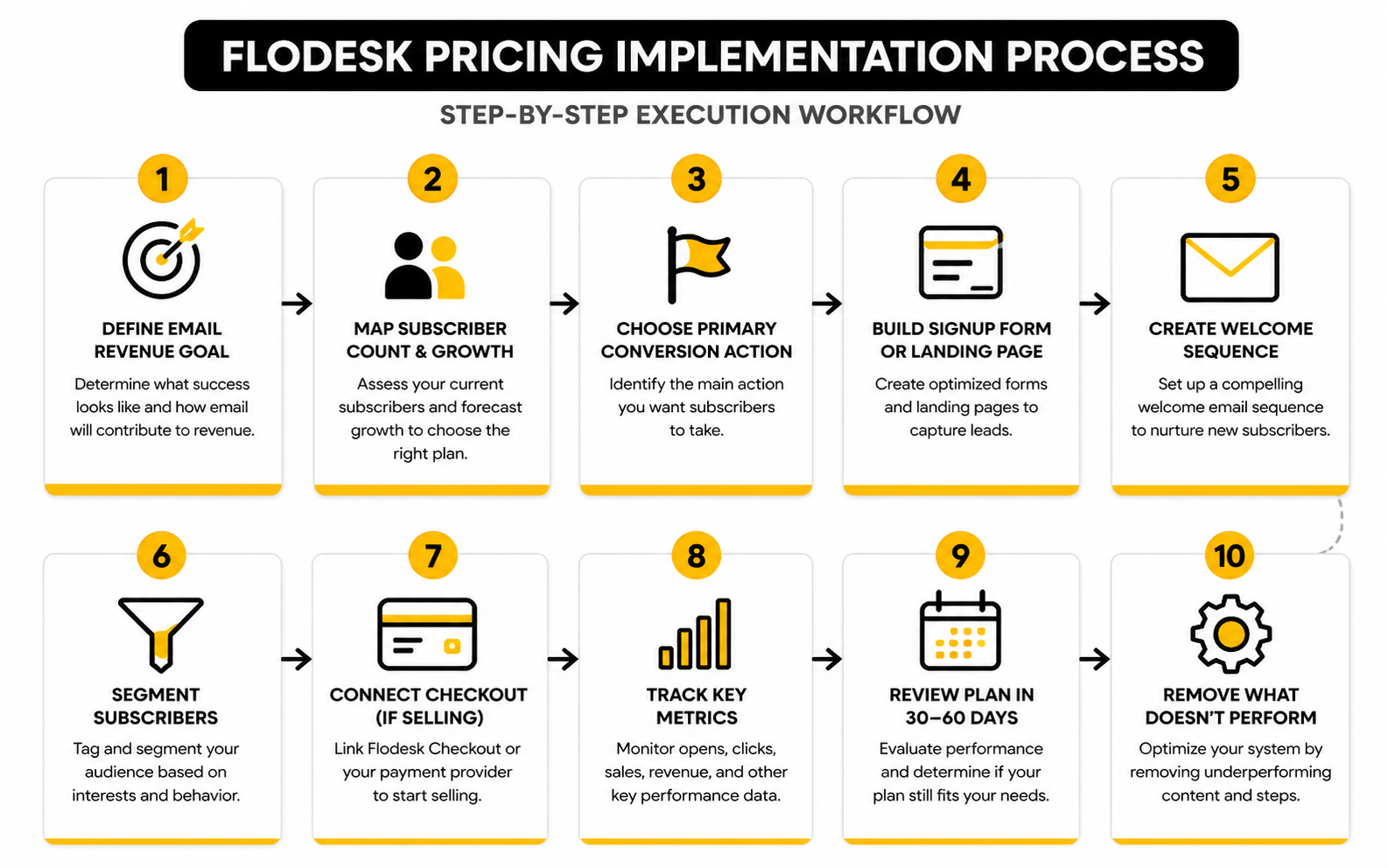 If you use Flodesk Checkout, measurement needs to go beyond email metrics. You should track page views, checkout starts, completed purchases, abandoned checkouts, average order value, and revenue by campaign. This is where the Everything plan can justify itself if the commerce features directly improve sales.