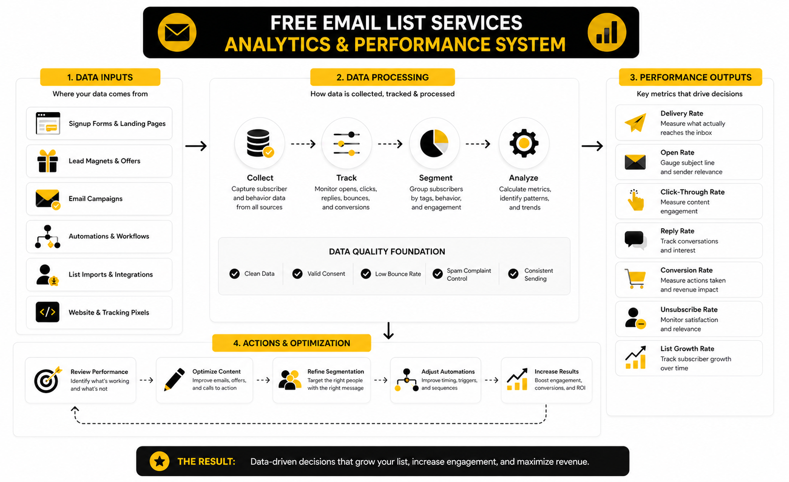 Deliverability data deserves special attention because damage can compound. Google and Yahoo’s sender requirements made authentication and complaint control more important for serious senders, and Microsoft added authentication requirements for high-volume consumer email senders in 2025. That does not mean a beginner using free email list services needs enterprise infrastructure on day one, but it does mean sloppy sending is no longer harmless.