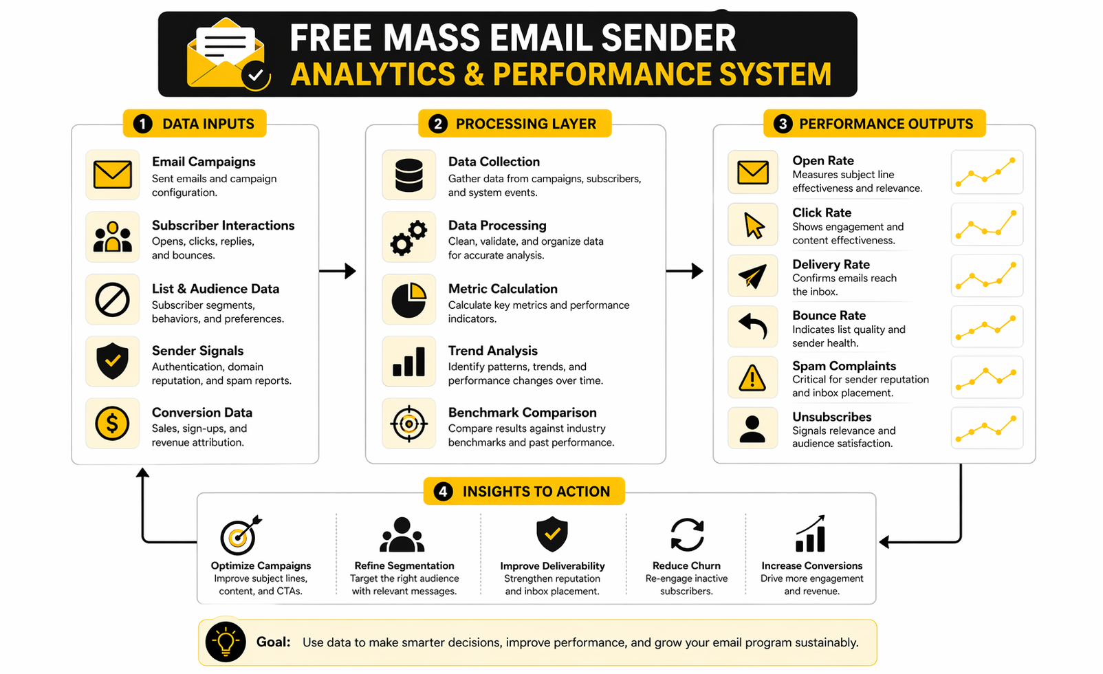 If your free mass email sender shows results that are far below these broad ranges, you probably have a relevance problem, a list-quality problem, or both. If your results are comfortably inside the range, that does not automatically mean you are winning. It just means you have earned the right to look deeper.