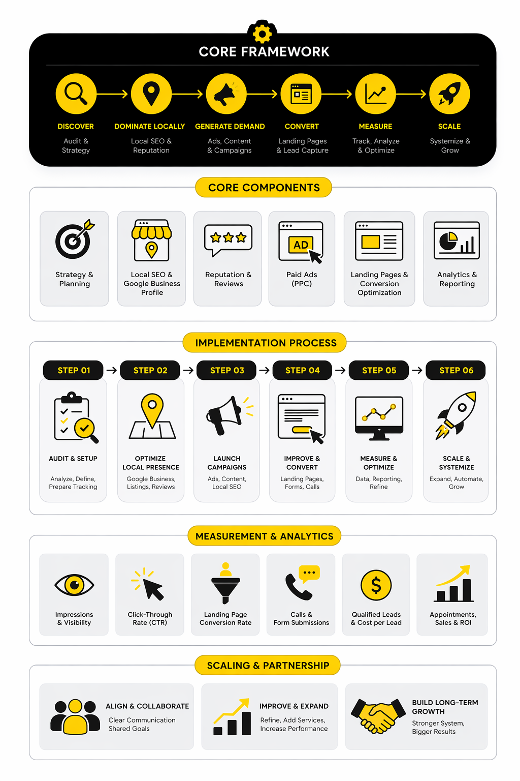 A strong agency does not start by pitching random tactics. It starts by showing how it will connect local visibility, lead capture, follow-up, and reporting into one system that can actually be measured. That matters because local demand is large and still shifting toward digital channels, with BIA forecasting U.S. local advertising revenue at about $171 billion in 2025 and digital projected to take a larger share of local ad revenue than traditional media for the first time.