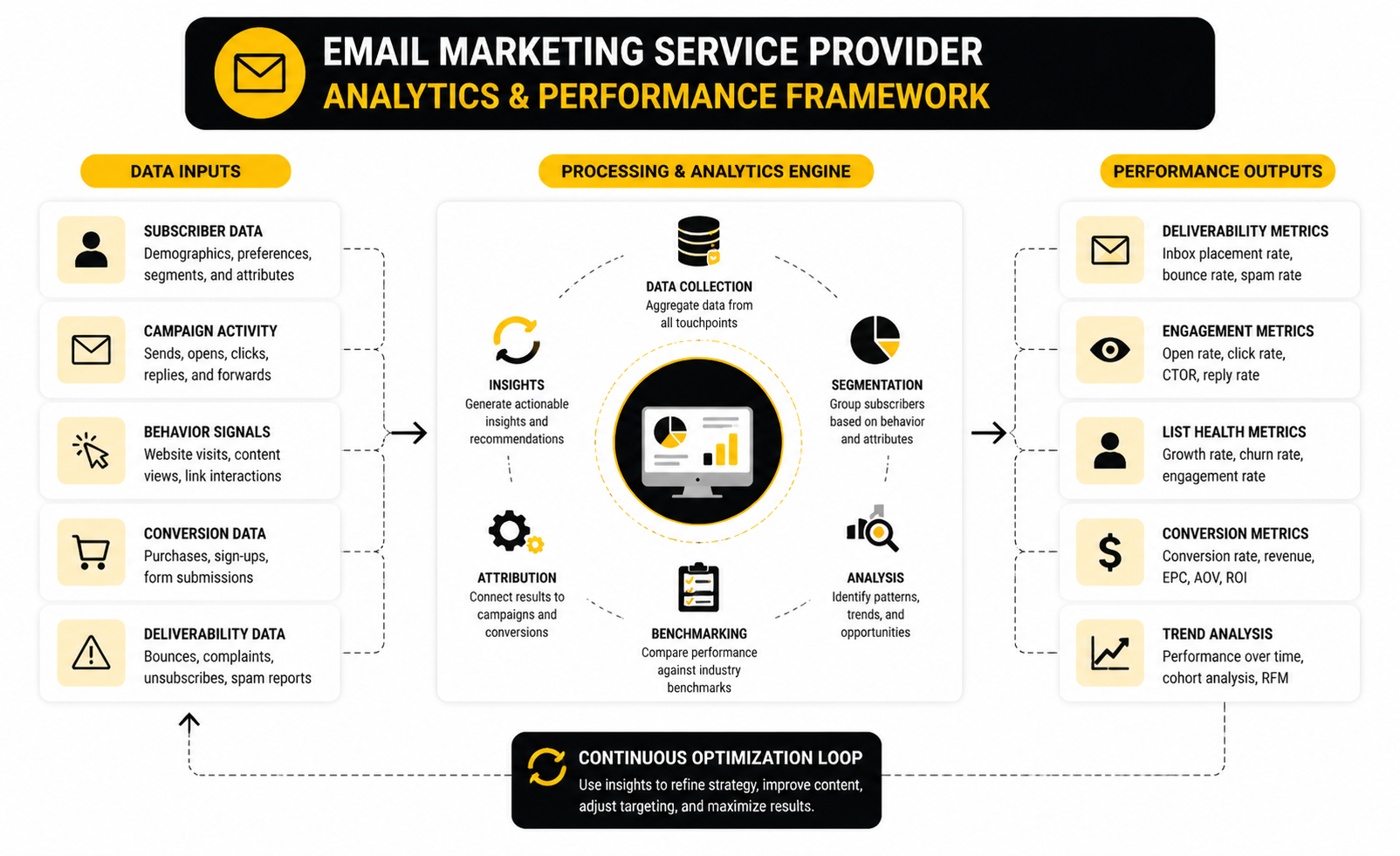 Deliverability, timing, and testing all happen here. The best providers constantly optimize send times and maintain strong sender reputations.