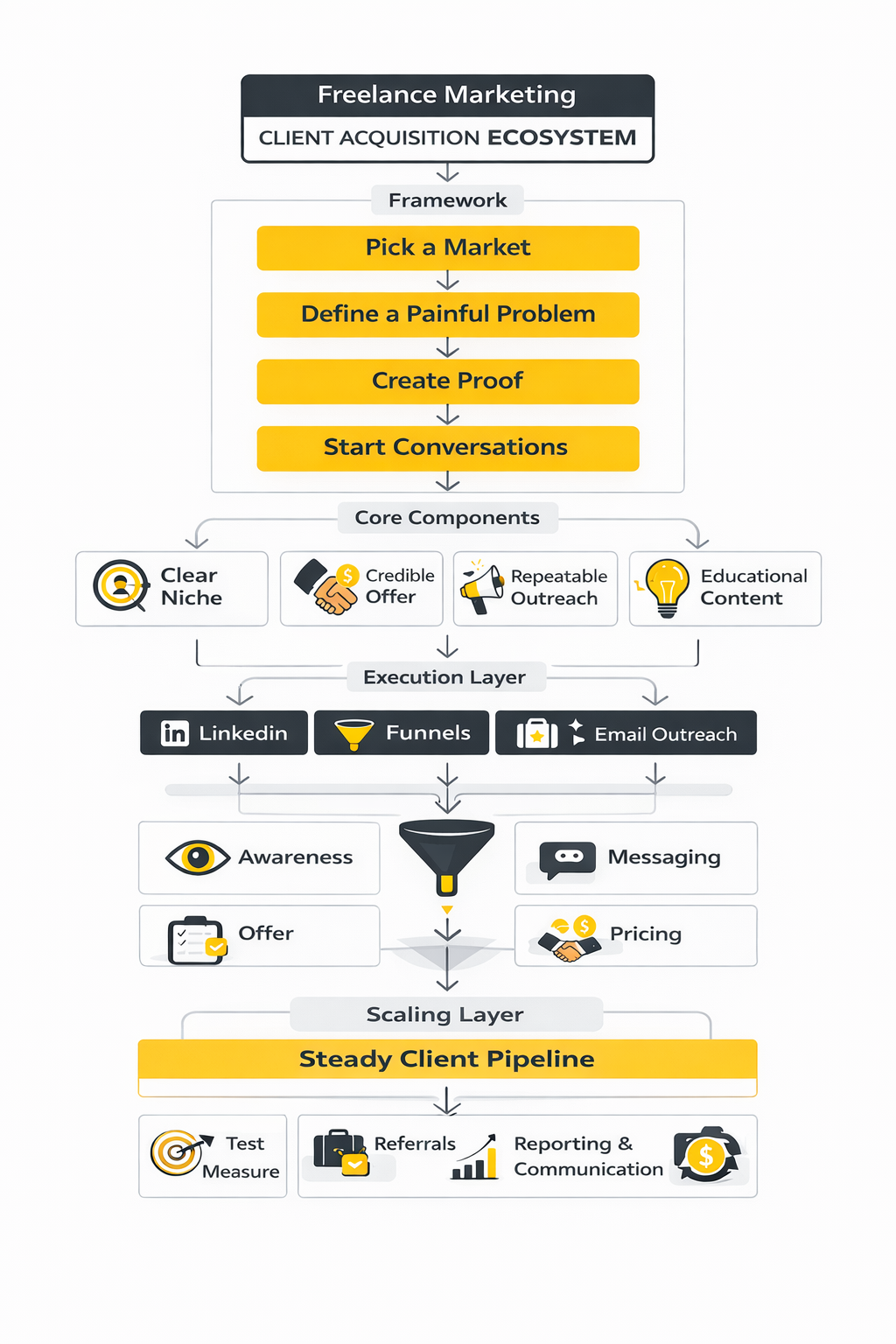 Tracking these numbers does two powerful things. First, it turns client acquisition into a process you can improve instead of a mystery you hope works. Second, it highlights bottlenecks quickly. If many people respond but few calls get booked, the issue might be positioning. If calls happen but deals stall, the problem might be the offer or pricing structure.