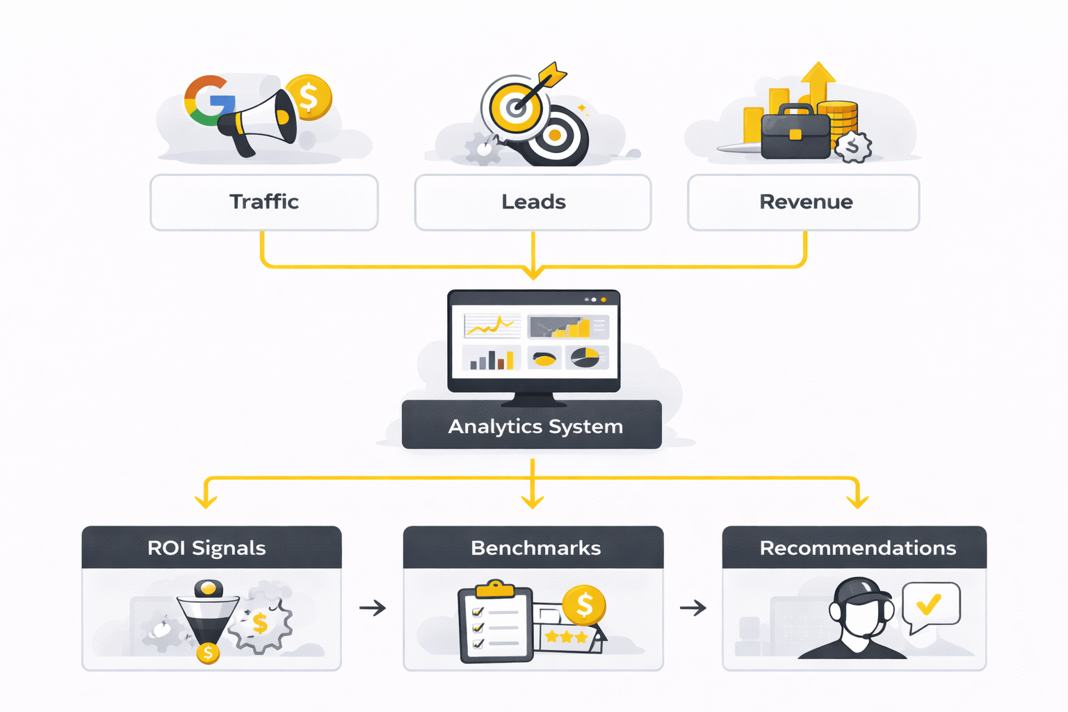 That is the measurement chain that keeps reporting honest. It forces the HVAC marketing agency to connect top-of-funnel movement with real operating results instead of celebrating traffic for its own sake.