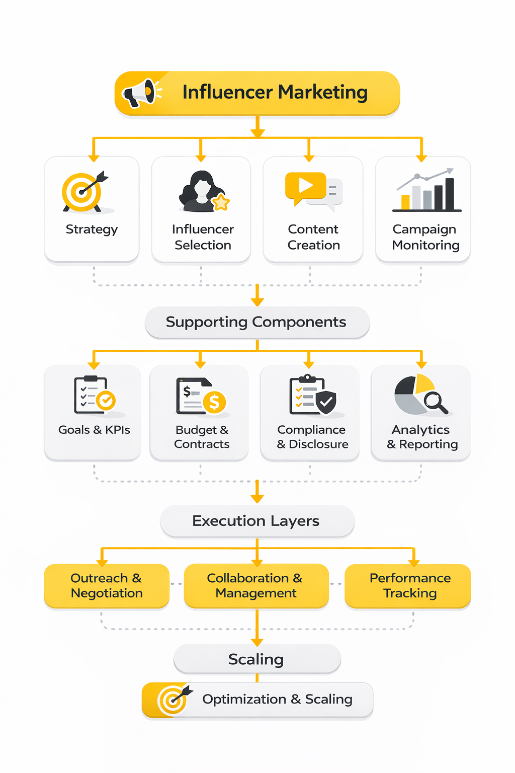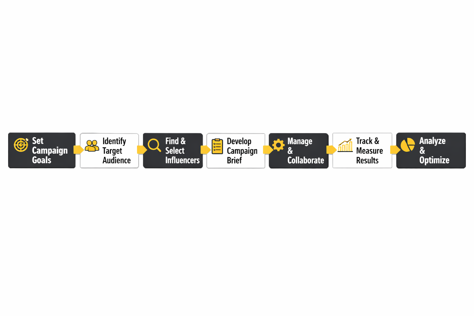 The implementation side of influencer marketing does not need to be complicated, but it does need to be consistent. A repeatable process keeps creative work moving without turning the campaign into chaos. In practice, the workflow usually looks like this: