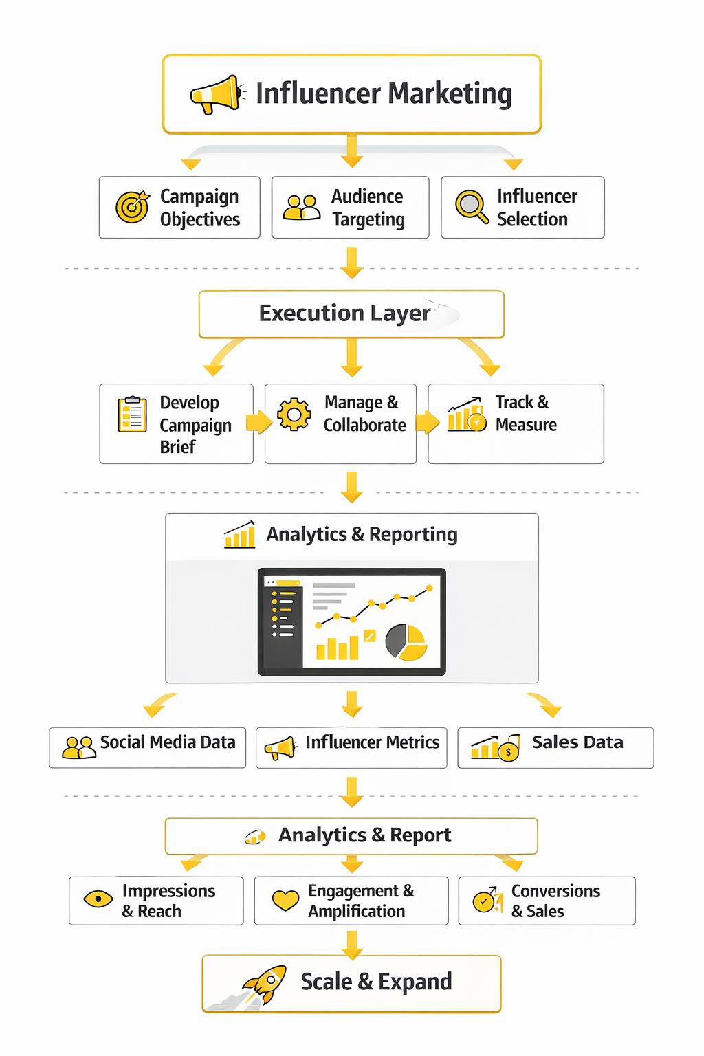 The final layer of influencer marketing is ecosystem thinking. Once a brand gets the basics right, the channel stops being just about matching a creator to a campaign. It becomes a system that connects creators, platforms, paid amplification, landing pages, CRM flows, analytics, and long-term brand positioning into one repeatable engine.