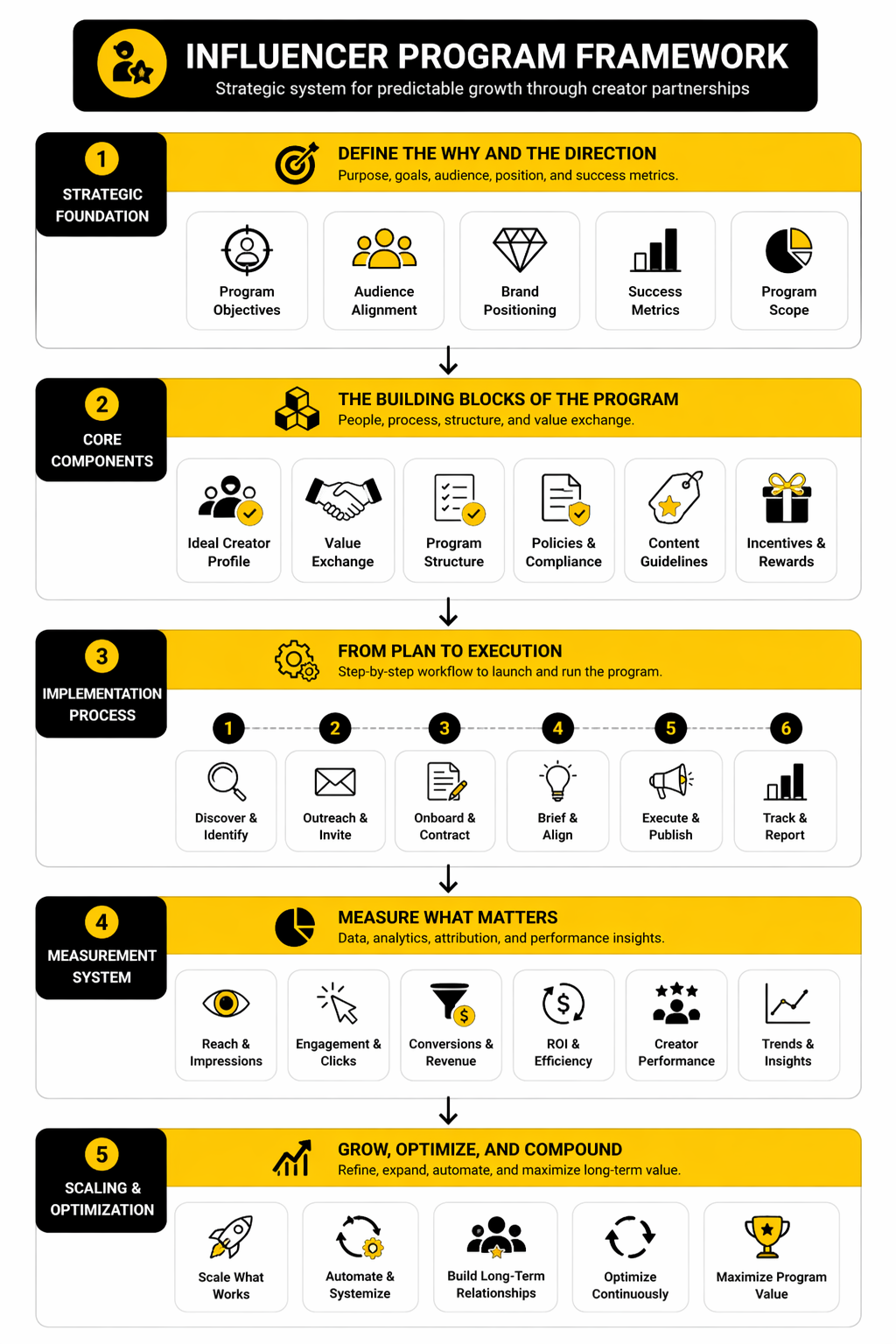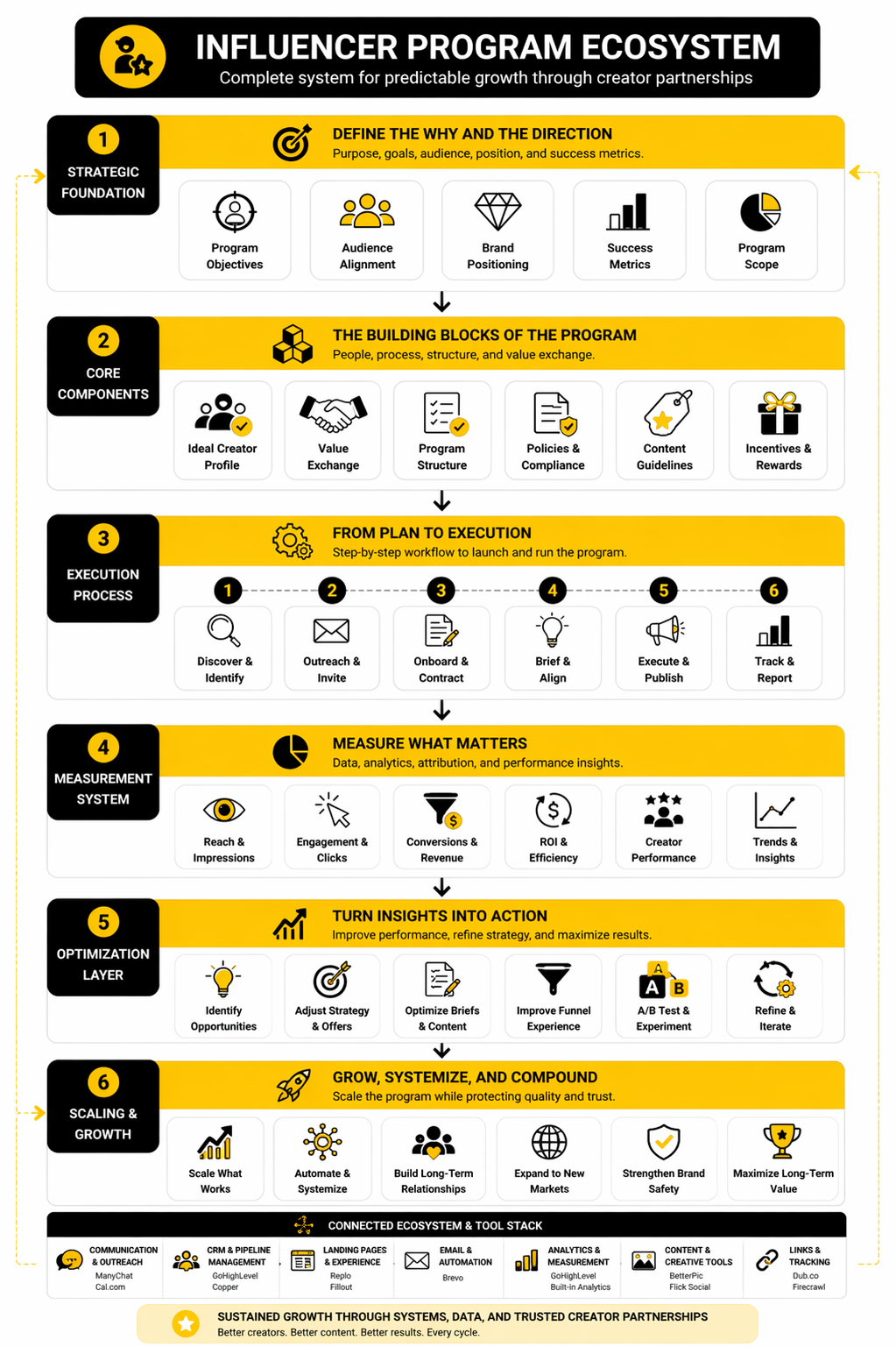 At this point, the shape of a strong influencer program should be clear. It is not just a creator list, a discount code, or a one-off sponsorship workflow. It is a system that connects strategy, recruiting, briefing, compliance, content reuse, measurement, and scaling so the channel gets sharper over time instead of more chaotic.