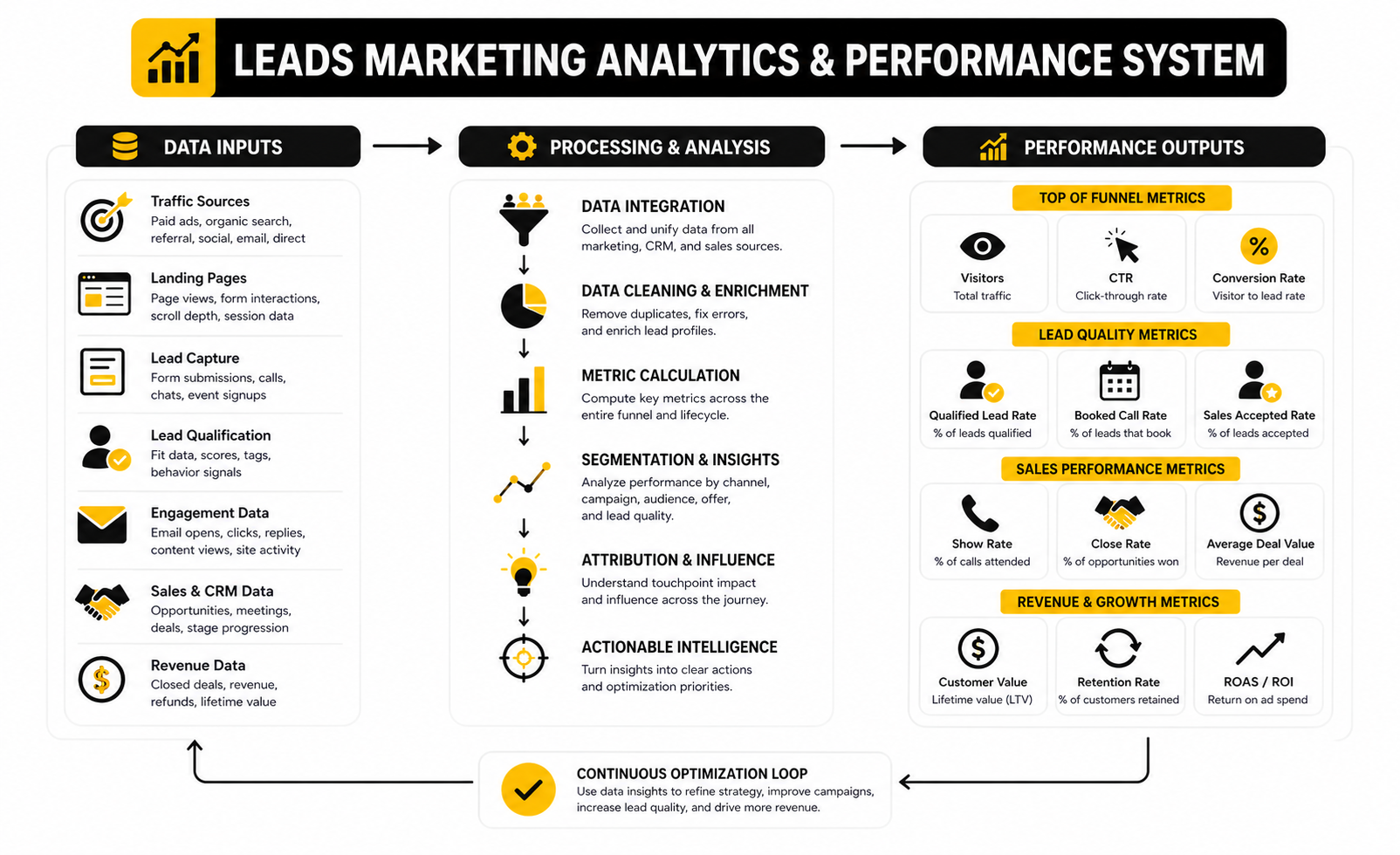 Leads marketing is the discipline of attracting, capturing, qualifying, nurturing, and converting people who show measurable interest in your offer. Done well, it does not stop at collecting email addresses. It connects traffic, messaging, forms, CRM data, follow-up, sales handoff, and revenue feedback into one system.