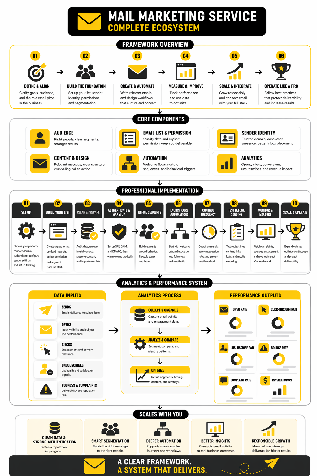 Professional teams usually implement a mail marketing service in phases, not in one dramatic switch. That sounds less exciting, but it is exactly how you avoid wrecking deliverability, breaking automations, or importing a messy database into a clean system. The implementation process should protect sender reputation first, then stabilize data, then expand campaigns once the foundation is trustworthy.