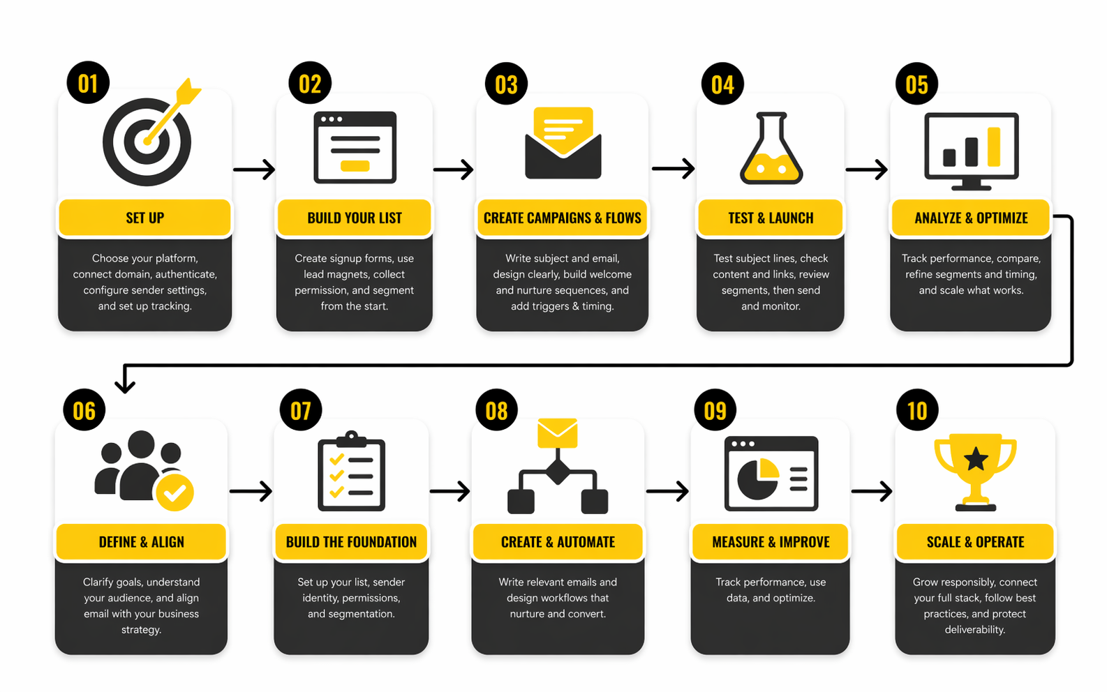 That step-by-step sequence sounds almost boring, which is exactly why it works. It reduces moving parts. It also makes troubleshooting much easier because when something underperforms, you can isolate whether the problem is data quality, workflow logic, content, or sender reputation instead of guessing blindly.
