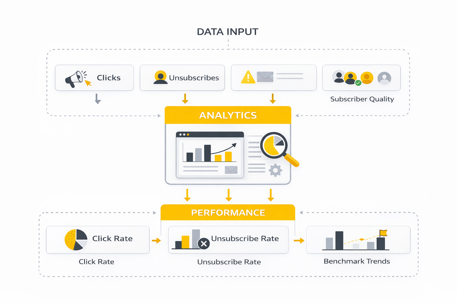 This is important because a campaign can “perform well” and still fail to grow the business. Maybe the open rate is strong, but new subscribers are not coming in. Maybe clicks look decent, but unsubscribes cancel out your gains. Maybe list growth is happening, but the new subscribers are poor quality and disappear after the first send.