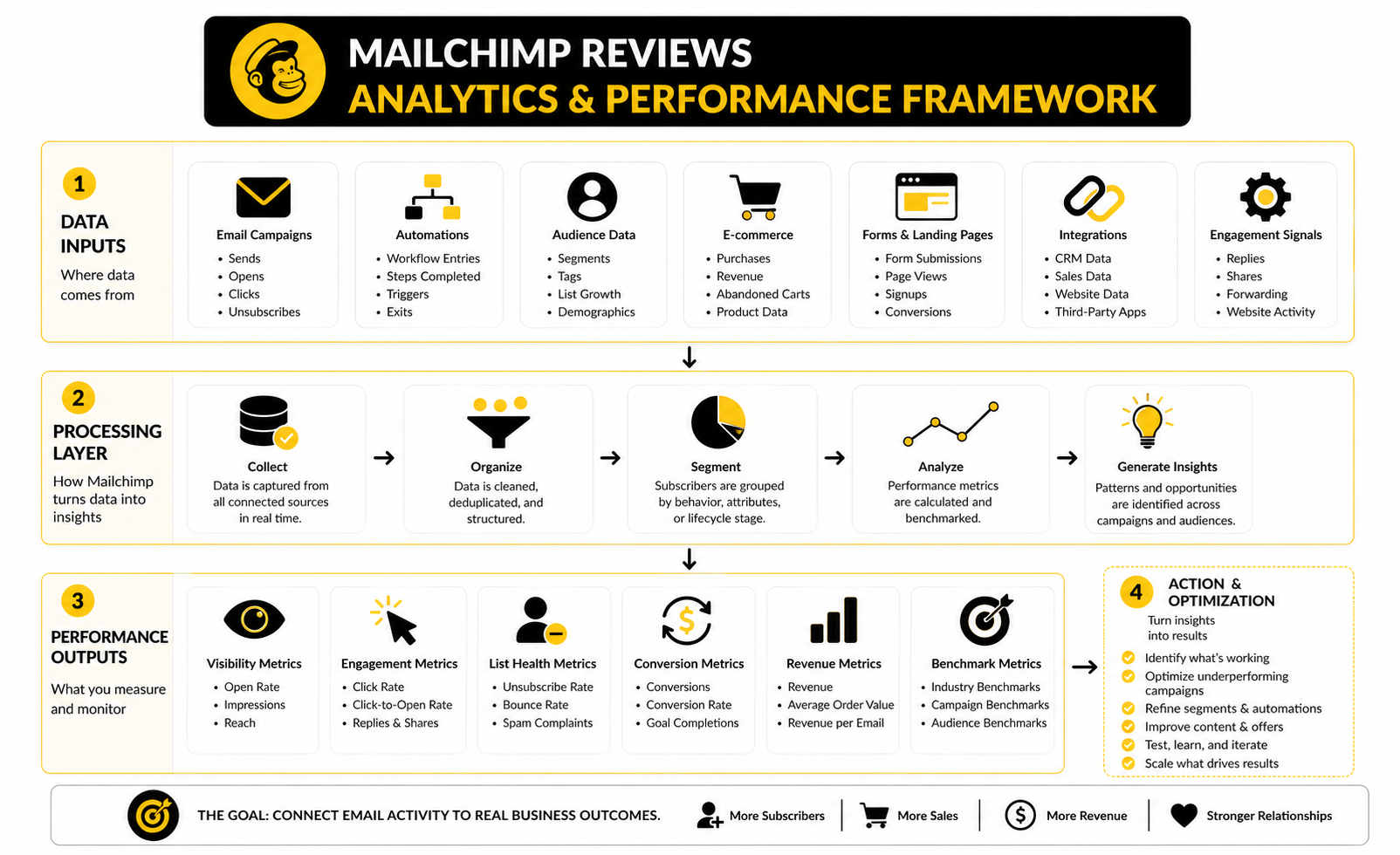 Track opens, clicks, unsubscribes, bounces, spam complaints, segment performance, conversions, and revenue where possible. Do not obsess over one metric in isolation. The best Mailchimp reporting setup connects email behavior to real business outcomes like sales, bookings, replies, retention, or qualified leads.