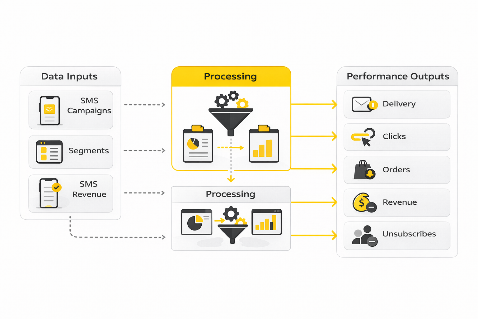 A clean Mailchimp SMS analytics system usually centers on four signal groups: