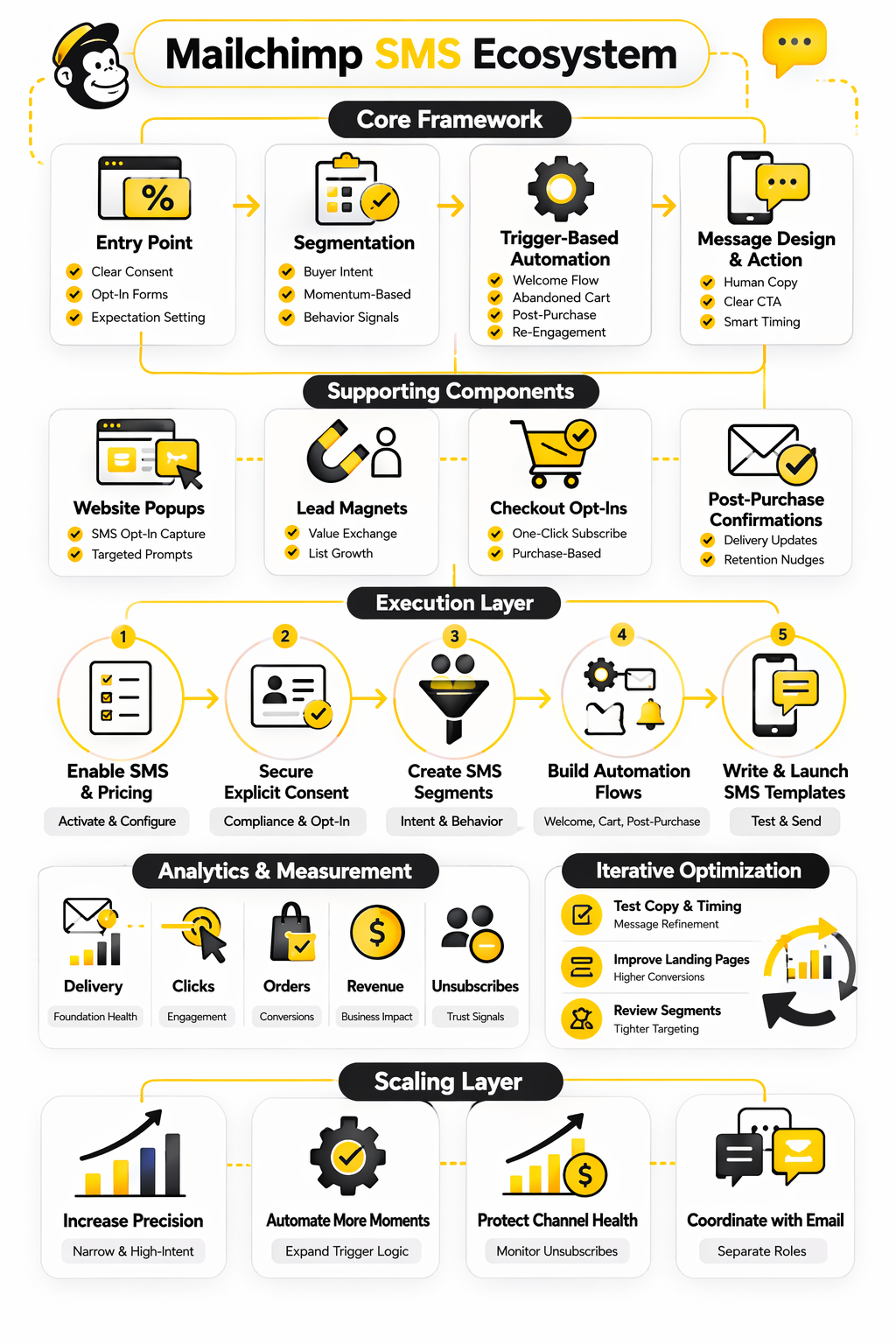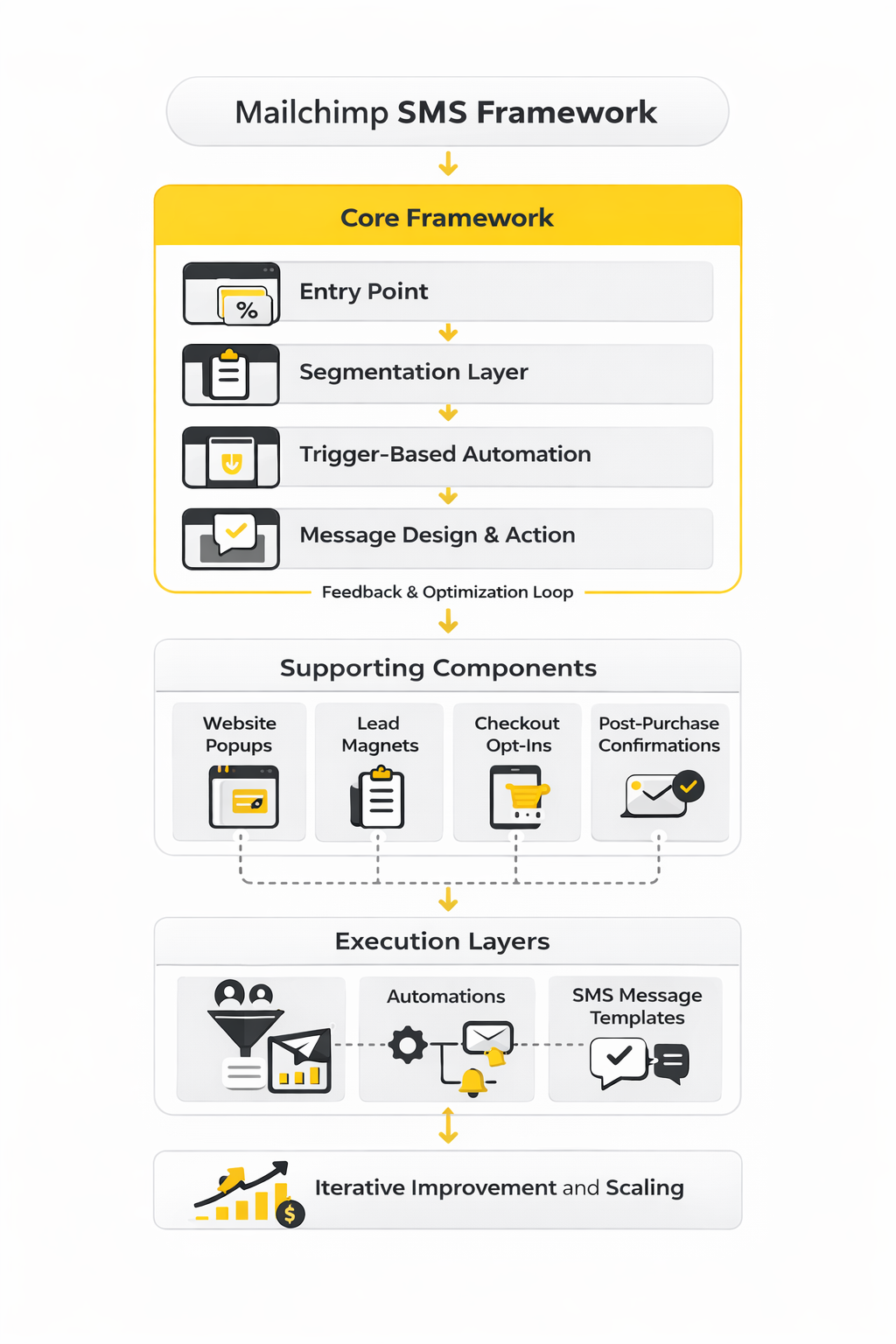 A proper Mailchimp SMS setup follows a simple but powerful structure: