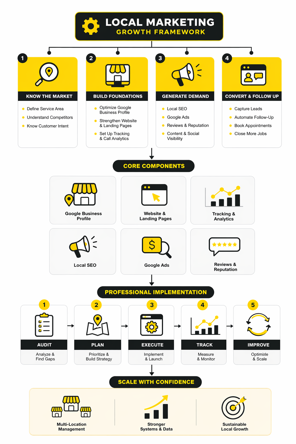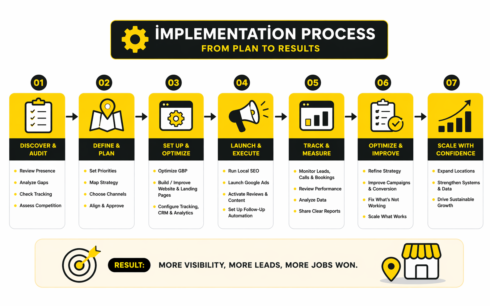 A lot of agencies make implementation sound mysterious because it helps them sell confidence. In reality, good local marketing execution is structured, repetitive, and surprisingly operational. It is less about one clever breakthrough and more about getting the fundamentals aligned fast, then compounding improvements over time.