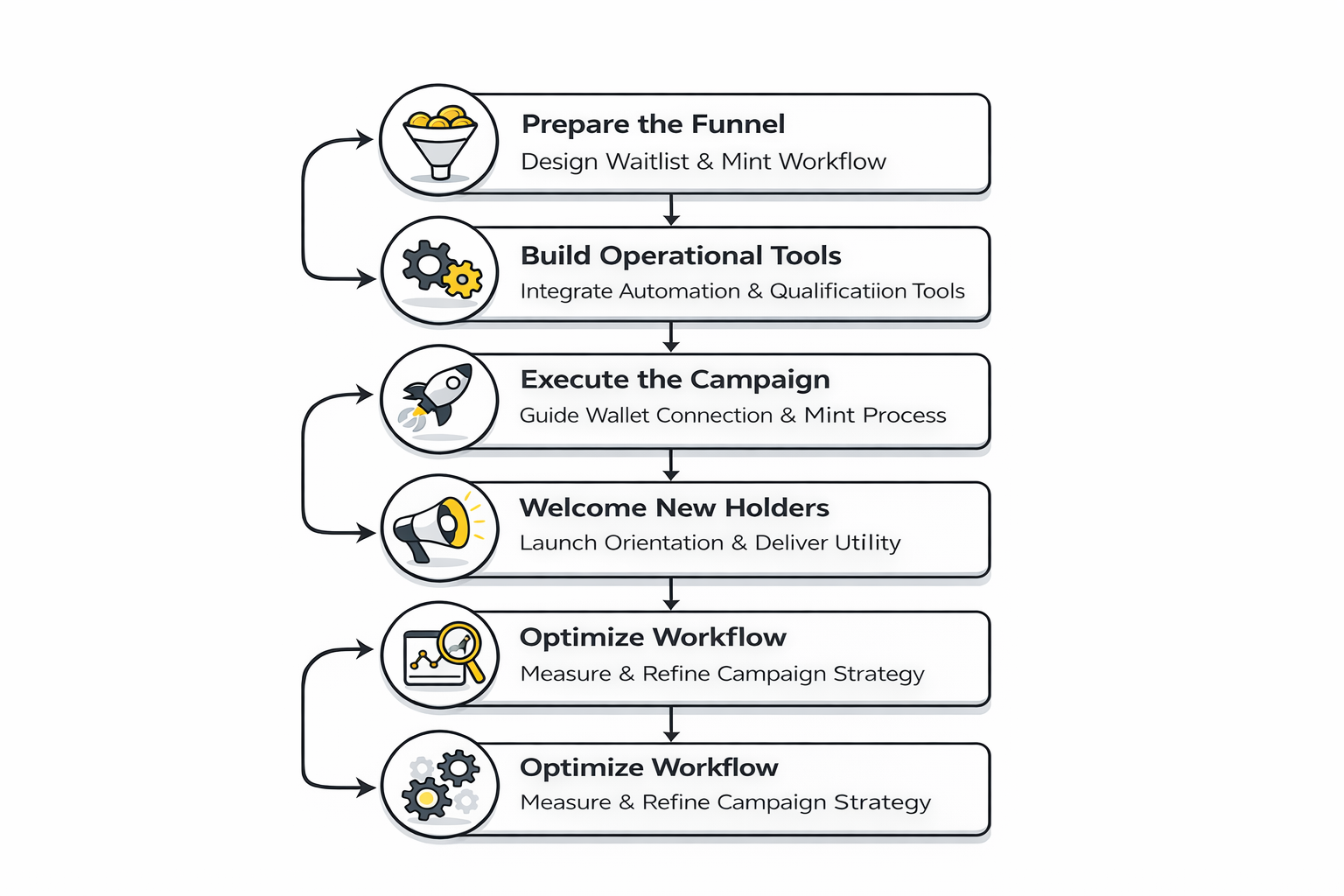 The safest way to think about launch execution is to treat it like a controlled rollout, not a single event. You are warming demand, qualifying intent, reducing friction, validating systems, and only then opening the mint or claim action. When that order is respected, campaigns feel sharper and conversion becomes much easier to manage.