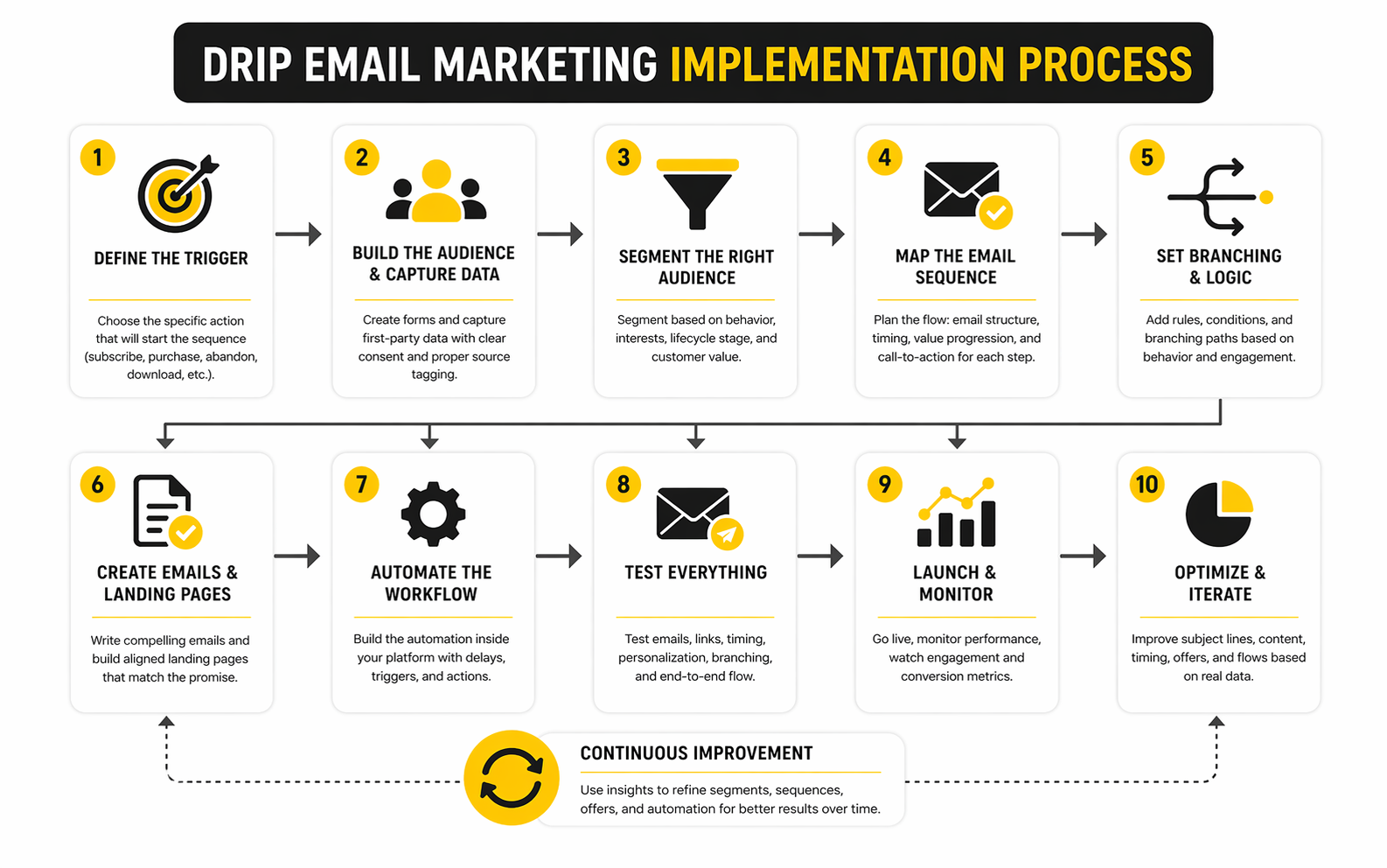 At this point, the shape of strong drip email marketing should be clear. It is not a random sequence of autoresponders, and it is definitely not a “set it and forget it” asset if revenue matters. The real system is built from clean triggers, reliable data, strong message progression, clear suppression logic, serious measurement, and constant respect for deliverability.