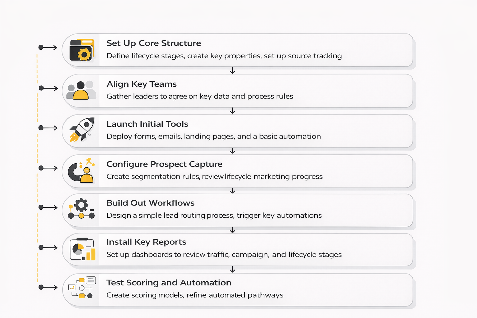 The cleanest way to implement HubSpot Marketing Hub is to treat it like a phased operating system rollout, not a grand launch. That approach matters because most companies do not fail from lack of features. They fail because they turn on too much before the team has agreed on data rules, funnel logic, and ownership.