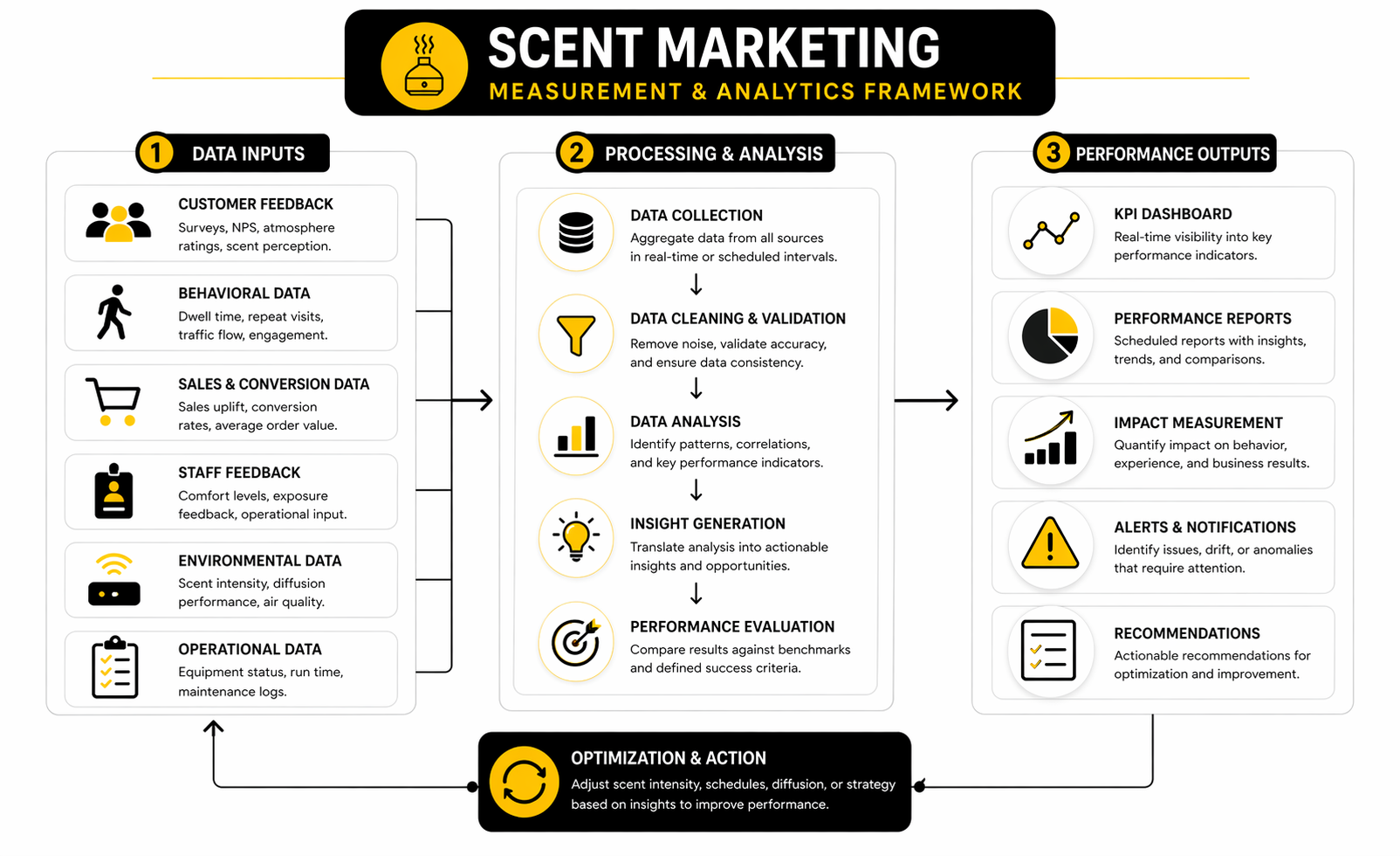 This is where a lot of teams get lazy. They collect a few reactions, hear that customers say the store feels nicer, and call the project a win. That is not measurement. That is mood. A proper scent marketing analytics system has to connect sensory changes to business signals, operating conditions, and customer perception over time.